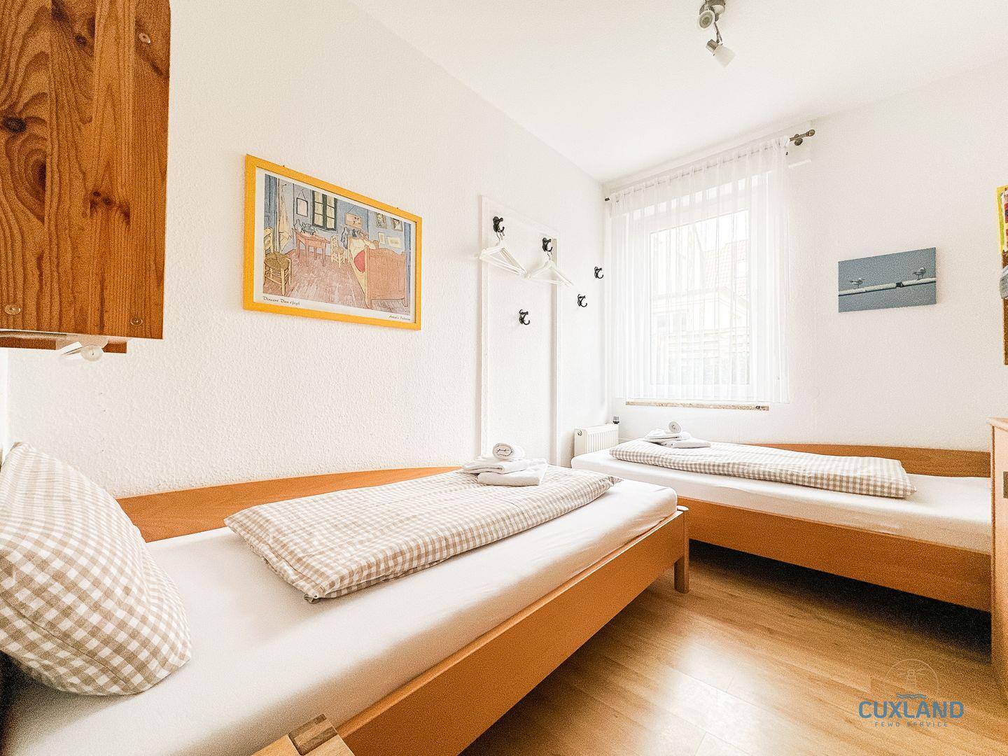 auch im zweiten Schlafraum mit zwei Einzelbetten. Das Sofa kann als Schlafcouch