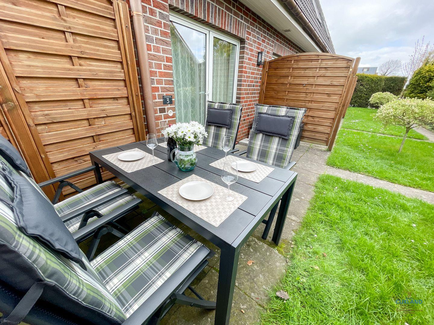 Vom Wohnbereich gelangt ihr auch auf die schöne Terrasse. Des Weiteren stehen