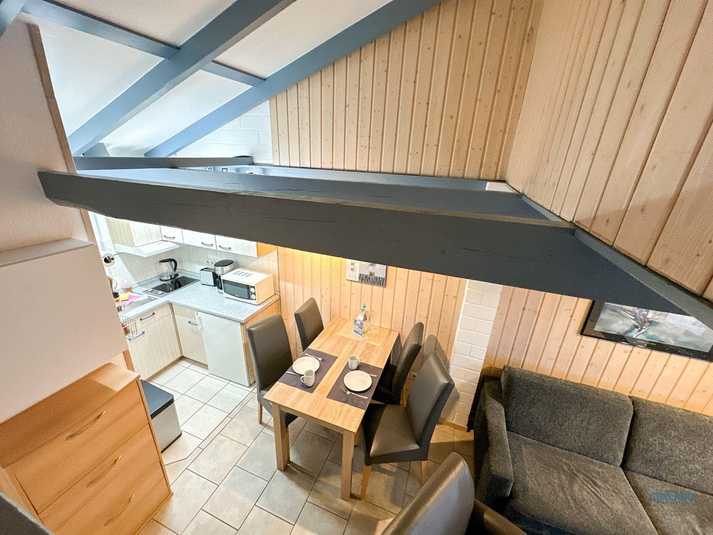 In diesem 40qm großen Ferienhäuschen finden bis zu 3 Personen Platz. Auf zwei Ebenen erstreckt sich das Haus, wobei sich das gemütliche Schlafzimmer mit einem zusätzlichen TV im oberen Bereich befindet. Der Wohn- und Essbereich mit offener Küche im unteren Bereich bietet Zugang zur großen Sonnenterrasse mit Terrassenmöbeln. Ein reservierter Parkplatz gehört ebenfalls zum Haus.