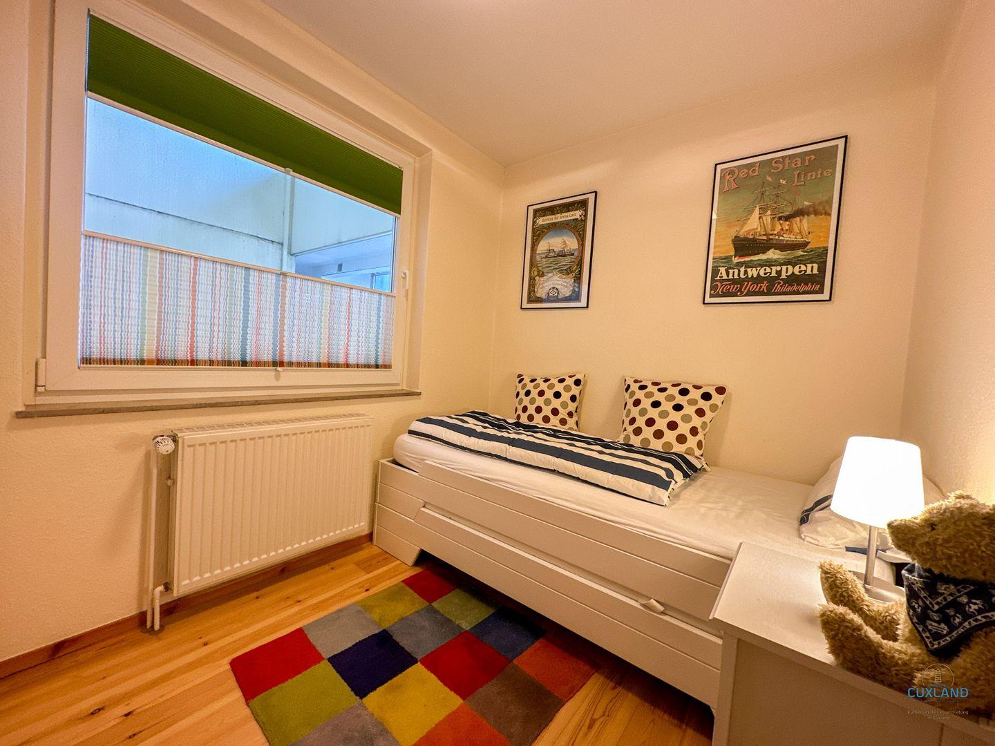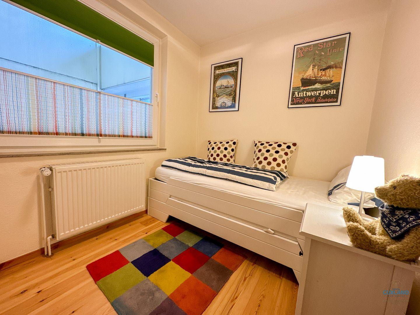 Ebenfalls auf der oberen Ebene befindet sich ein kleines Schlafzimmer mit