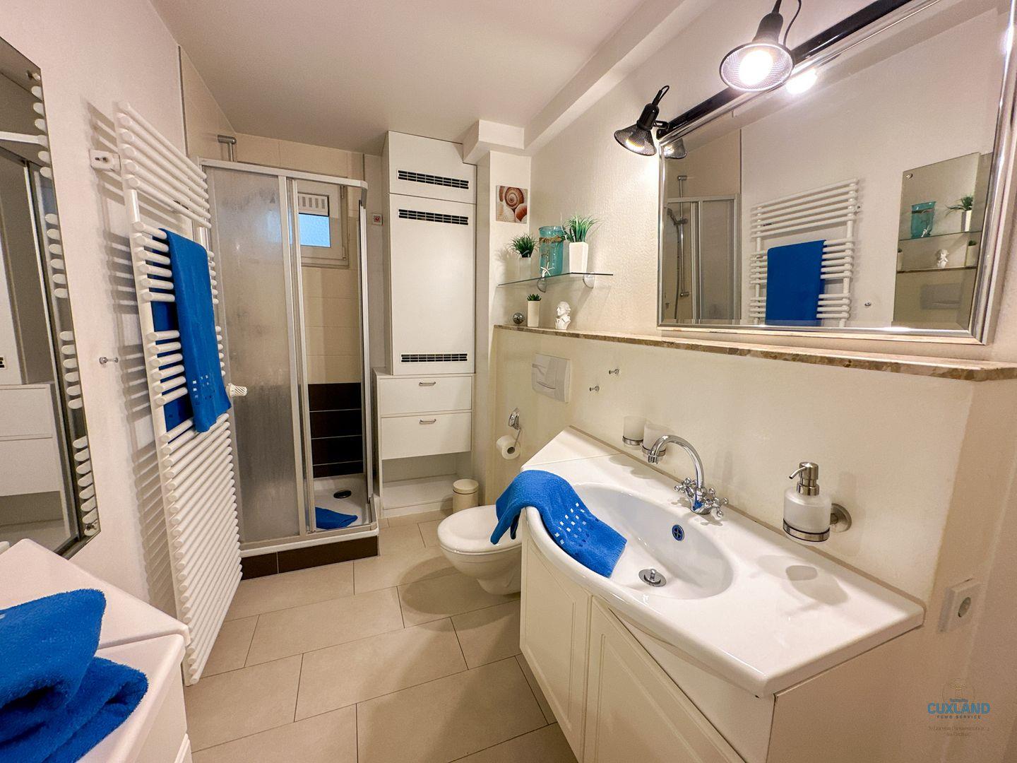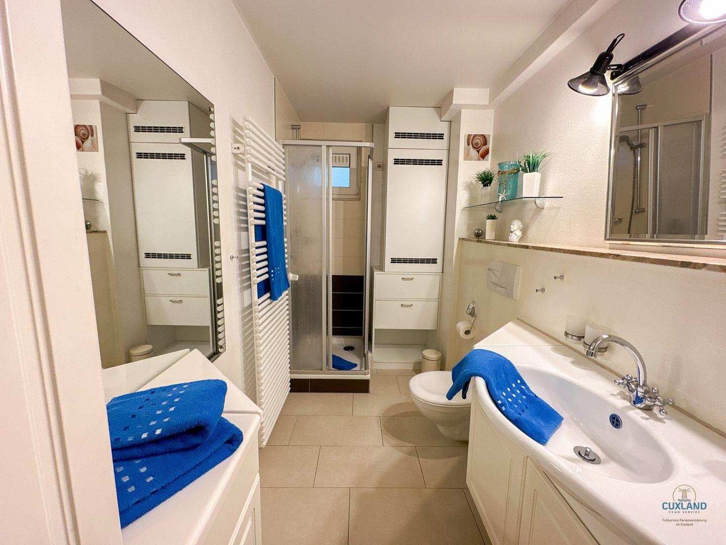 Dusche und beheizbarem Handtuchhalter. Separate Küche, welche mit allen