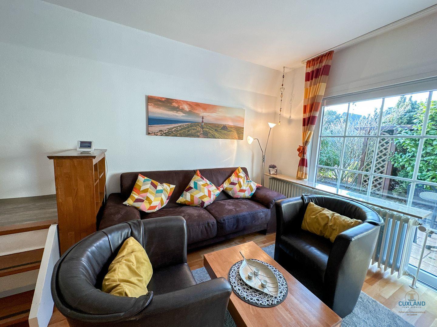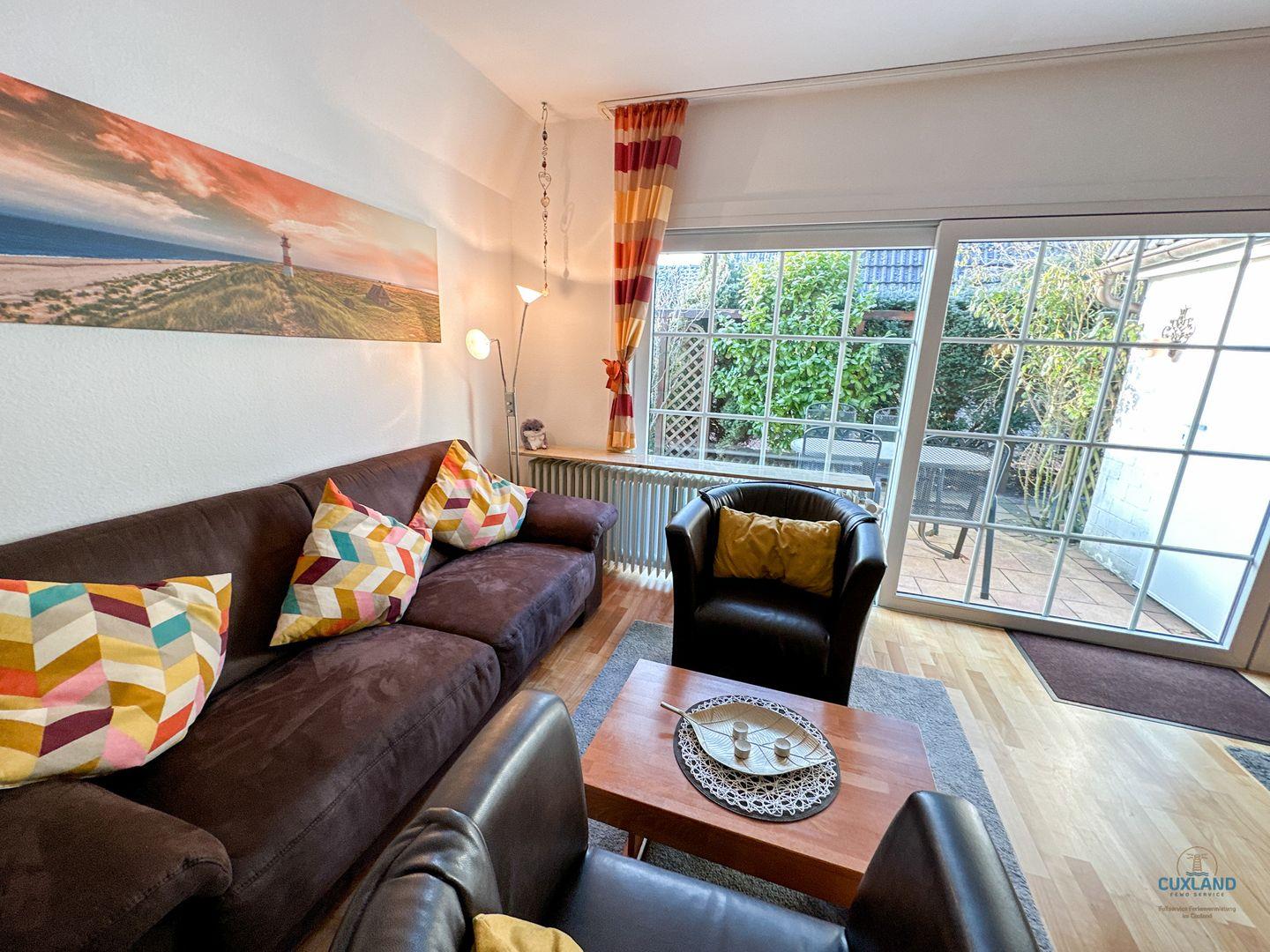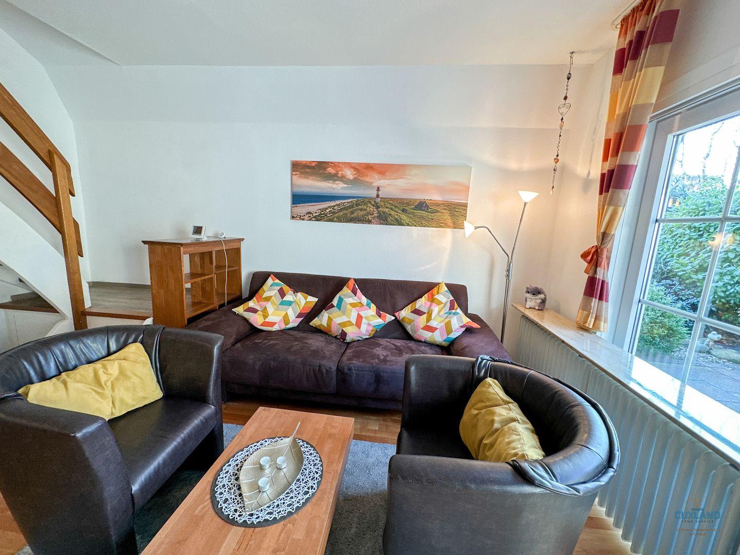 Das ruhig gelegene 65qm Ferienhaus am Ende einer Sackgasse im Ferienhausgebiet am Ringwall in Duhnen bietet ideale Bedingungen für einen Familienurlaub mit bis zu 4 Personen. Mit zwei Schlafzimmern im Obergeschoss (ein Doppelbett, zwei Einzelbetten), Duschbad, geräumiger Küche mit Spülmaschine und großem Wohnbereich auf der unteren Ebene ist es perfekt ausgestattet. Die Terrasse führt zu einem eingewachsenen, eingezäunten Garten. Kostenloses WLAN und ein eigener PKW-Stellplatz sind vorhanden.