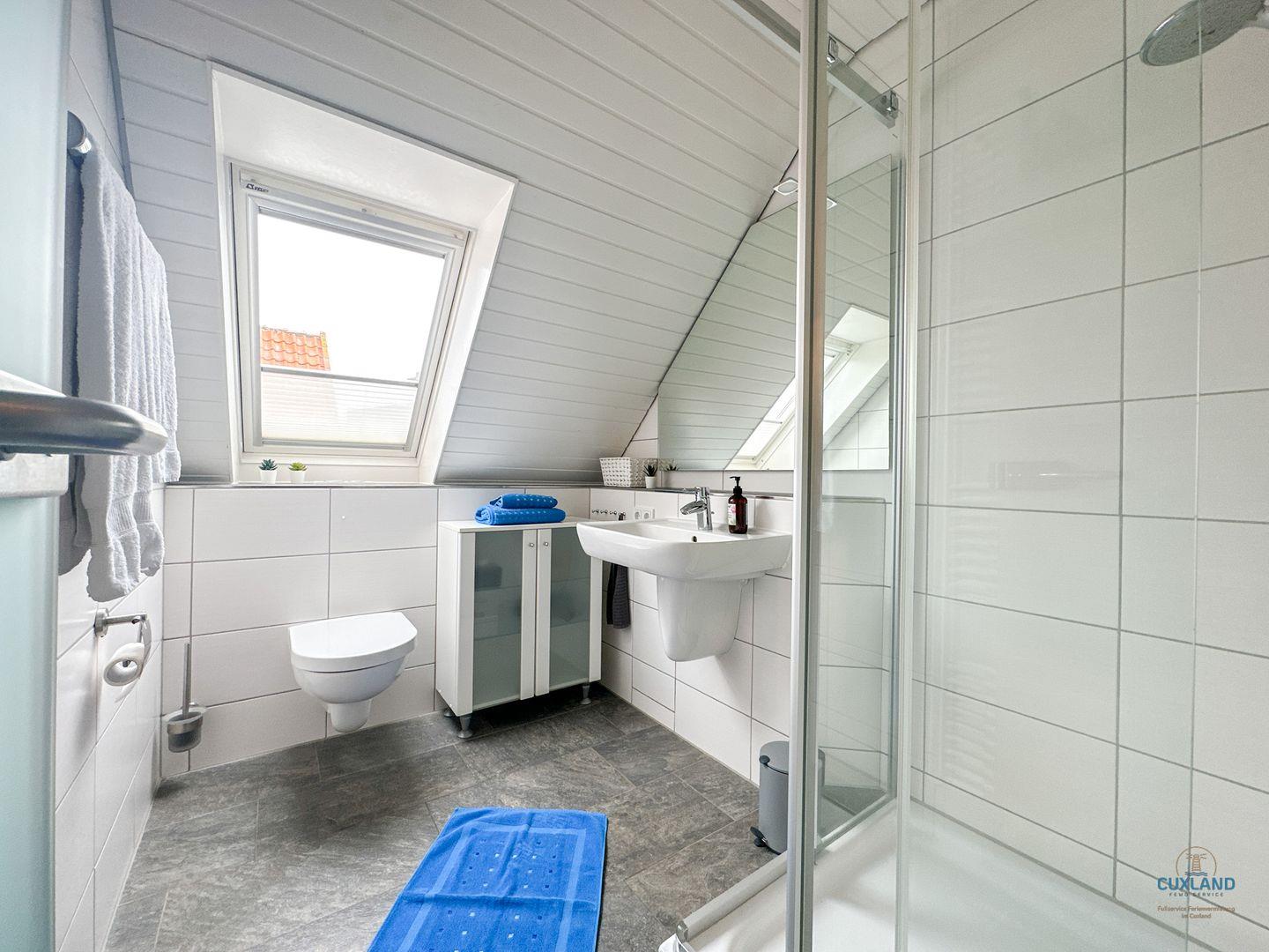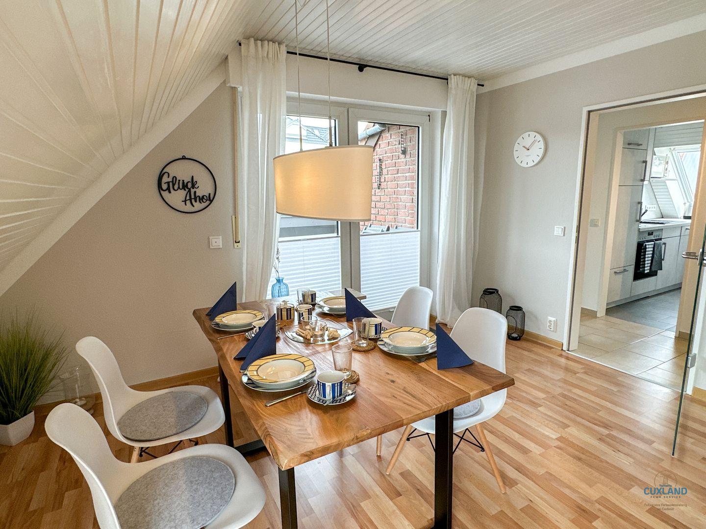 Diese helle und moderne 55qm Wohnung in Duhnen bietet auf zwei Ebenen Platz zum Entspannen. Der Wohnbereich mit Zugang zur Dachterrasse bietet einen Blick bis zum Wattenmeer. Das Hauptschlafzimmer verfügt über ein gemütliches Boxspringbett. Eine komplett ausgestattete Küche und kostenfreies WLAN sind ebenfalls vorhanden. Bitte beachtet, dass die Treppe steil ist und für kleine Kinder nicht geeignet ist. Ein schmaler PKW-Stellplatz ist inklusive.