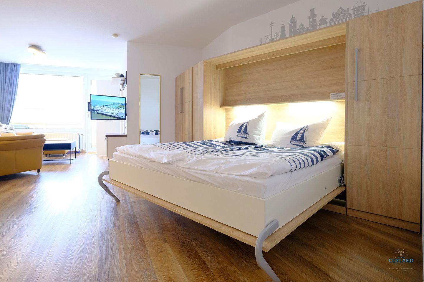 offenen Küche findest du alles, was du brauchst.Das gemütliche Schrankklappbett ist der