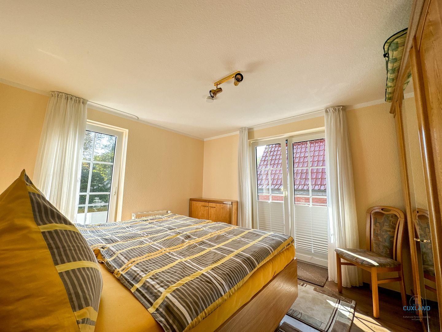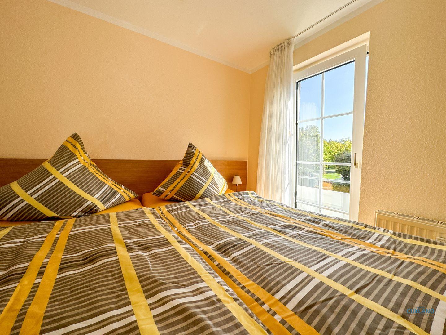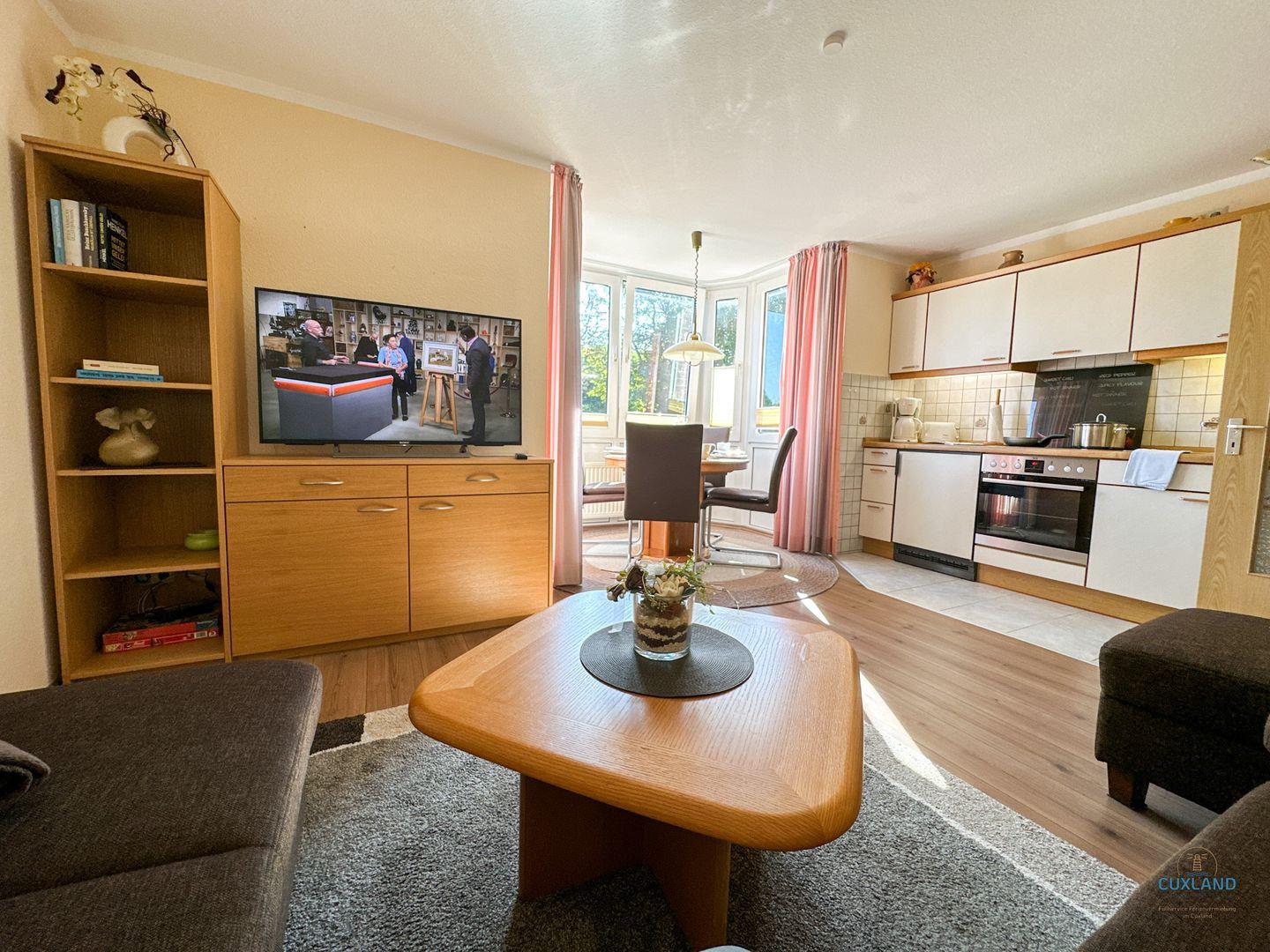 Diese 41qm große Ferienwohnung im Haus Elbstrom bietet Platz für bis zu 2 Personen und liegt direkt gegenüber dem Kurpark. Die gemütliche Wohnung verfügt über ein separates Schlafzimmer mit einem großen Doppelbett und einem kleinen Balkon. Der Wohnbereich mit einer bequemen Couch und einem hellen Essplatz bietet Blick auf den Kurpark Döse. Eine offene Küche lädt zum Kochen ein, und ein Duschbad steht zur Verfügung.