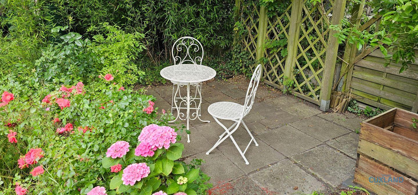 im Wohnzimmer, Platz für bis zu 2 Personen. Zur Wohnung gehört ein kleiner Gartenbereich, in dem euch Liegestühle zur Verfügung stehen. Hier lässt sich