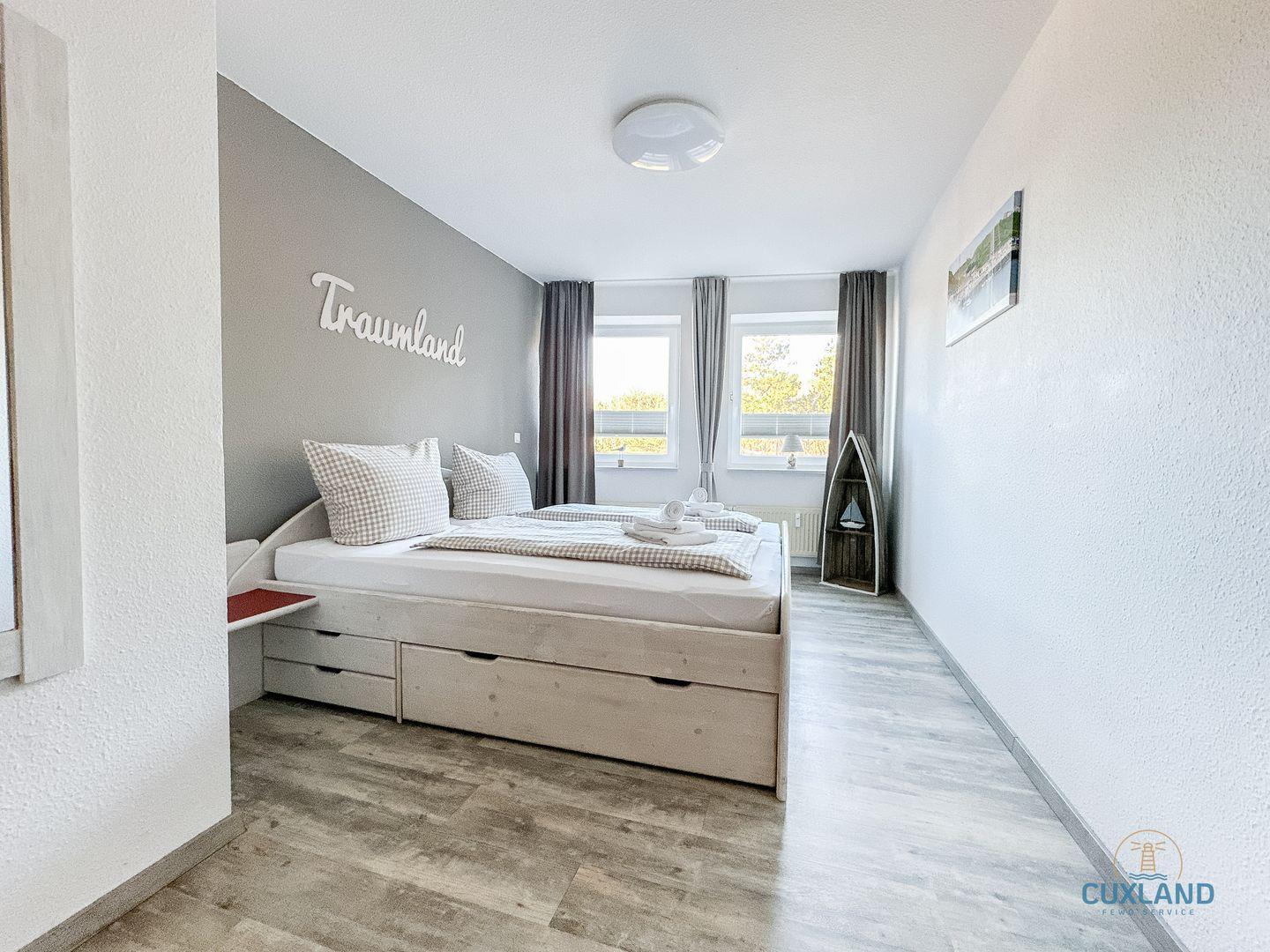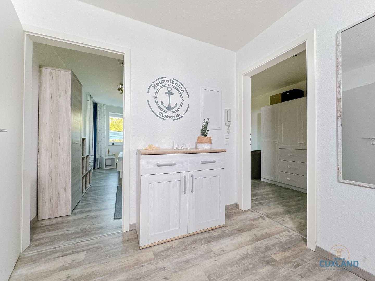 Diese gemütliche und maritim eingerichtete 63qm große Wohnung befindet sich in der 2. Etage. Sie bietet euch mit Ihren zwei großen Schlafzimmern und dem gemütlichen Wohnzimmer mit
