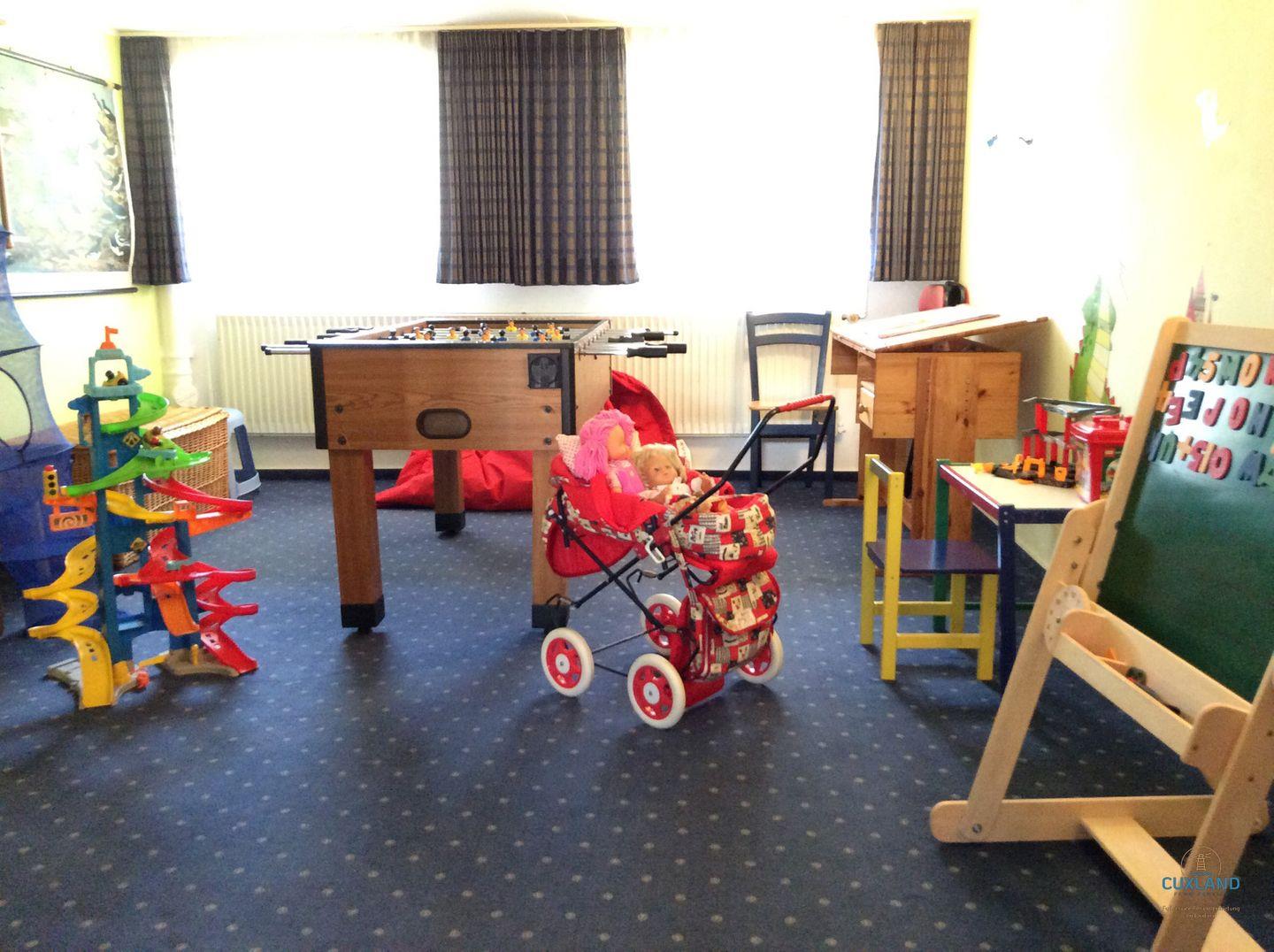 Gemeinschaftsräume zur Verfügung, unter anderem ein Kinderspielzimmer, eine