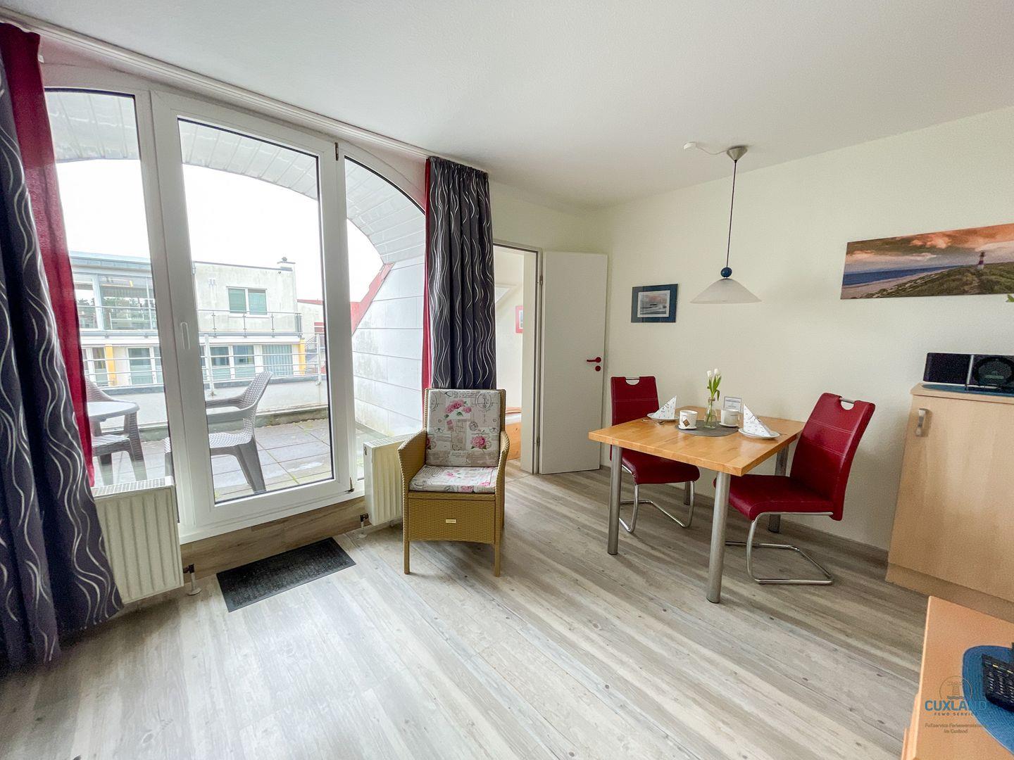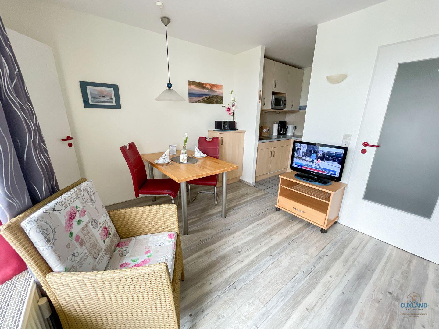 Dieses 25qm große Appartement befindet sich in der 4. Etage der Residenz Hohe Worth und bietet Platz für bis zu 2 Personen. Das gemütlich eingerichtete Wohnzimmer, mit offener Küche, Essbereich