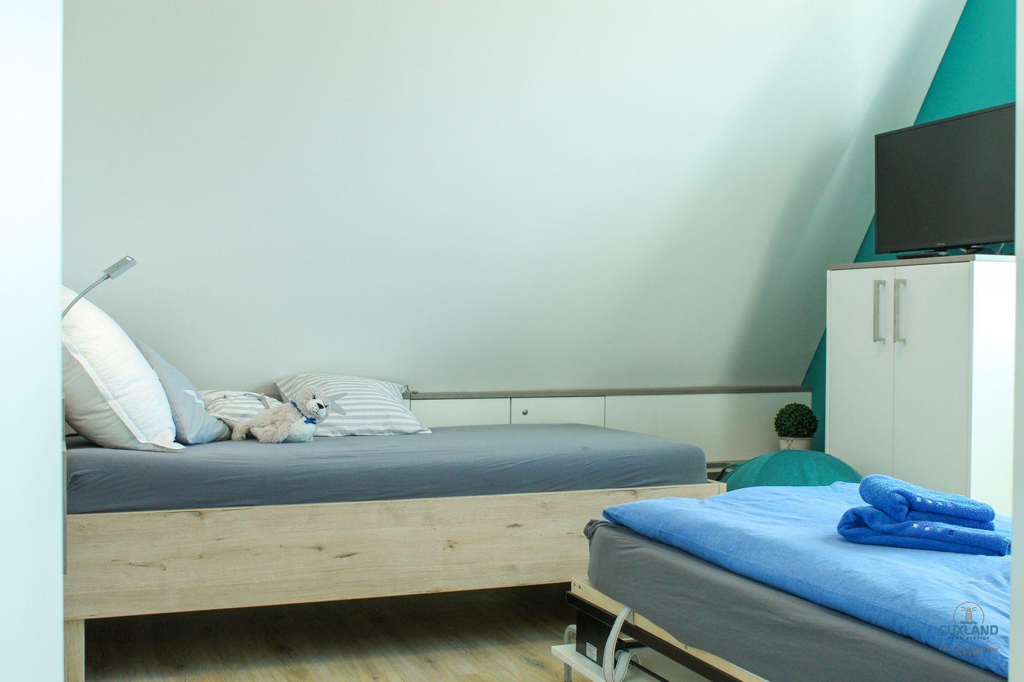zwei Einzelbetten (90x200cm). Das zweite Duschbad ist behindertengerecht