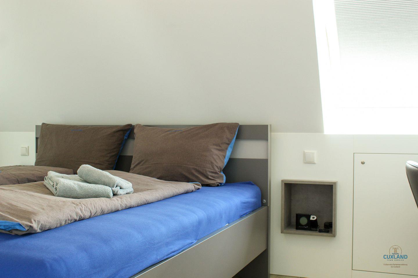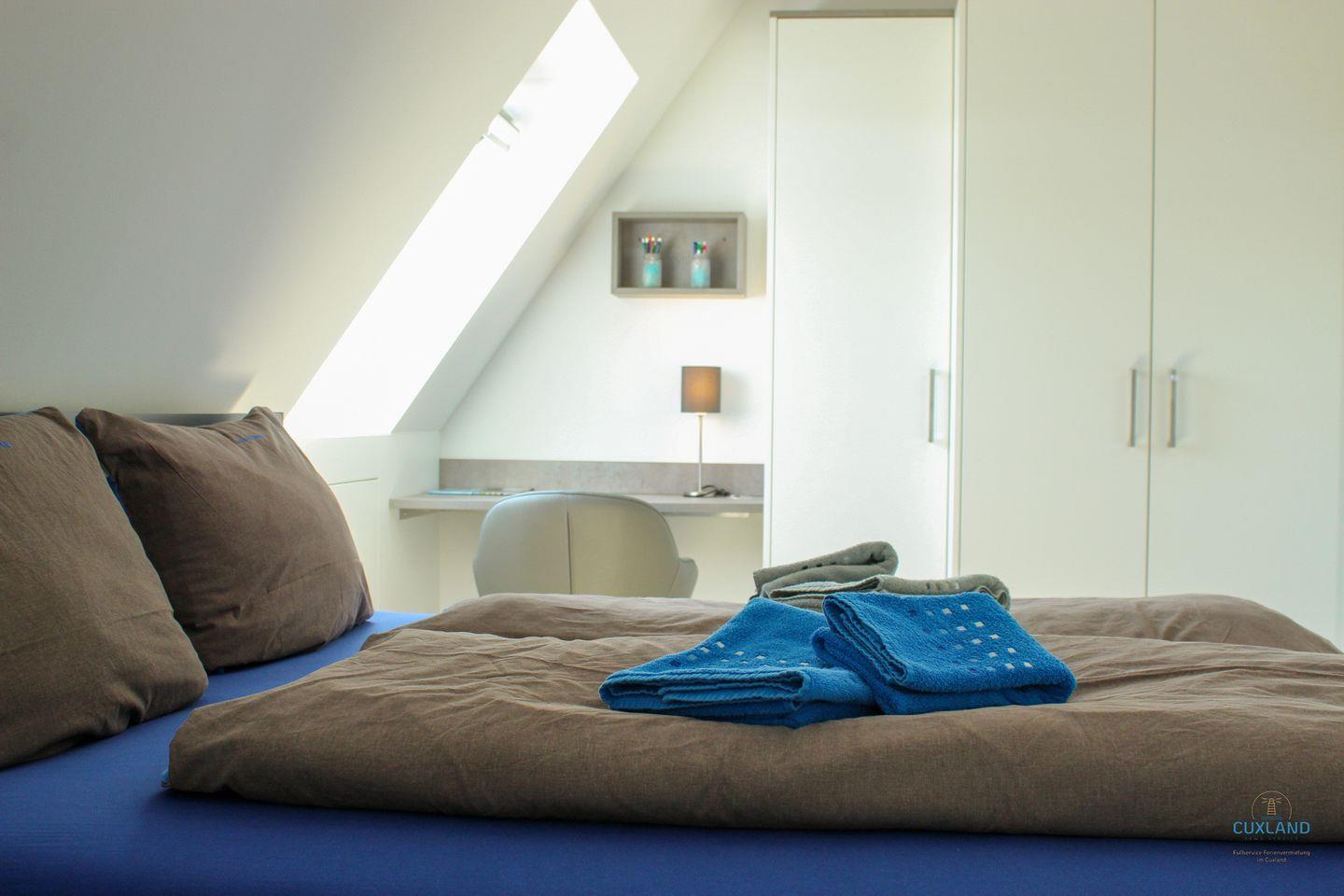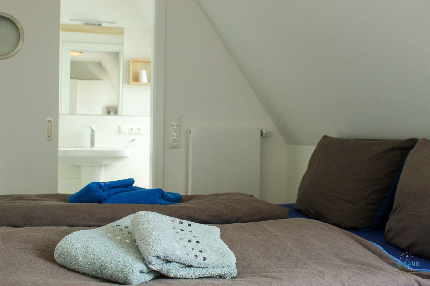 gemütlichem Doppelbett (180x200cm) und direktem Zugang zum Bad, der zweite mit