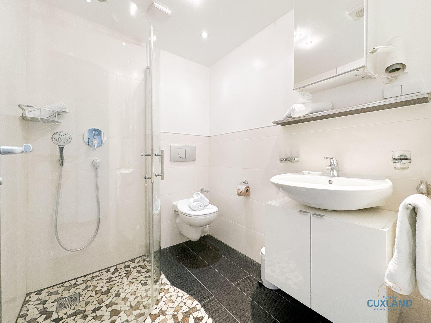 Die Wohnung verfügt über ein modernes Bad,