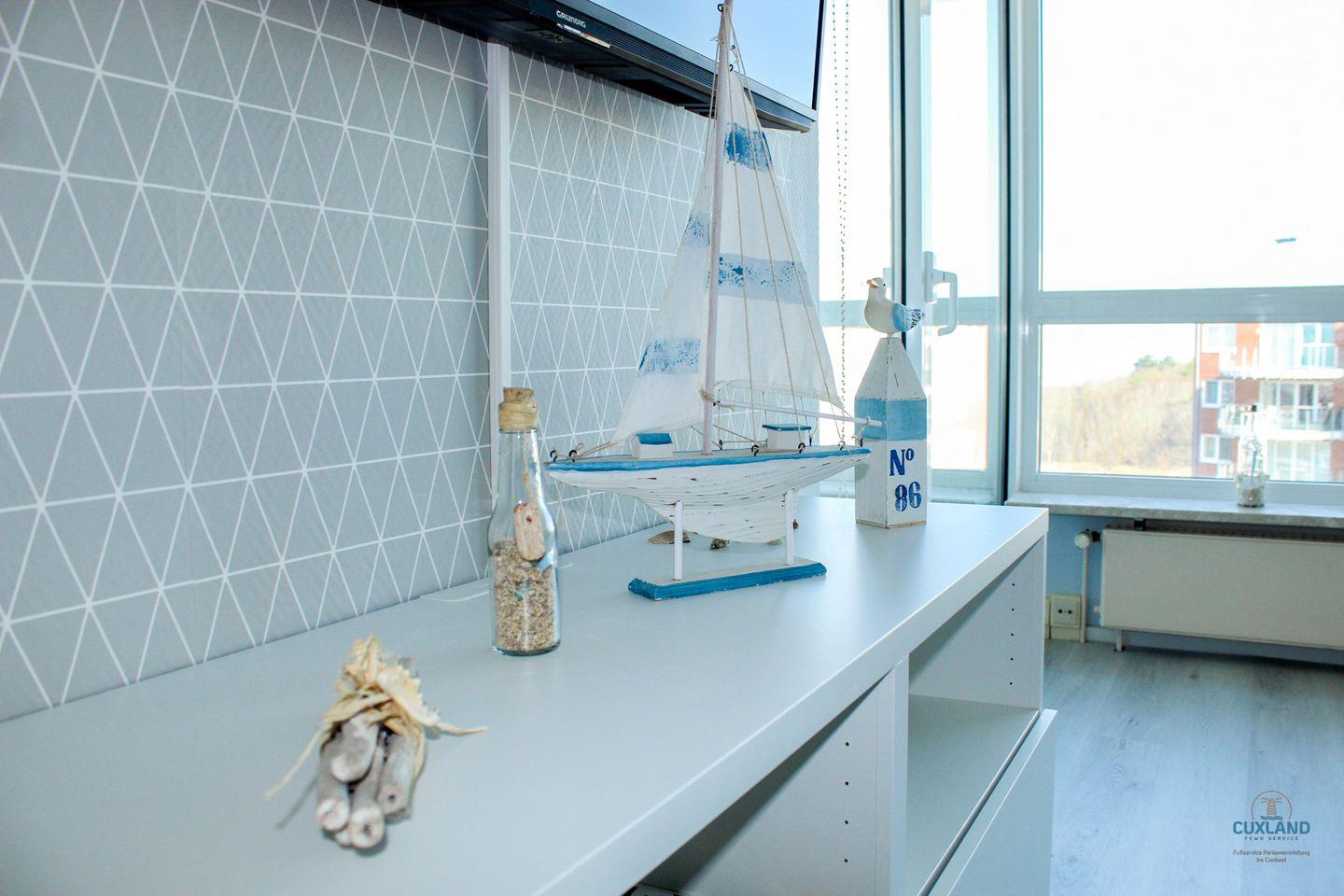 Dieses moderne 50qm Apartment im Haus Frische Brise begeistert mit sensationellem Ausblick auf Neuwerk. Die zeitgemäße Einrichtung umfasst ein separates Schlafzimmer mit flexiblen Boxspringbetten und ein modernes Schrankklappbett im Wohnzimmer. Die offene Küchenzeile lädt zum Zubereiten von Leckereien ein, die auf dem Balkon mit Neuwerkblick genossen werden können. Die 7. Etage-Wohnung bietet kostenloses WLAN und einen Parkplatz.