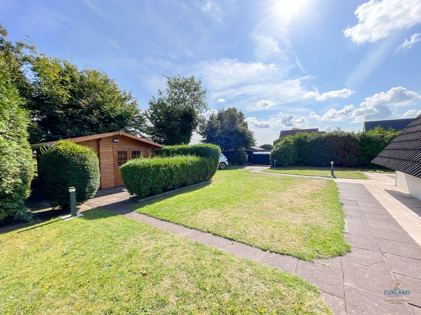 Gartenhaus mit einer weiteren Terrasse, sowie eine große Rasenfläche. Das Haus