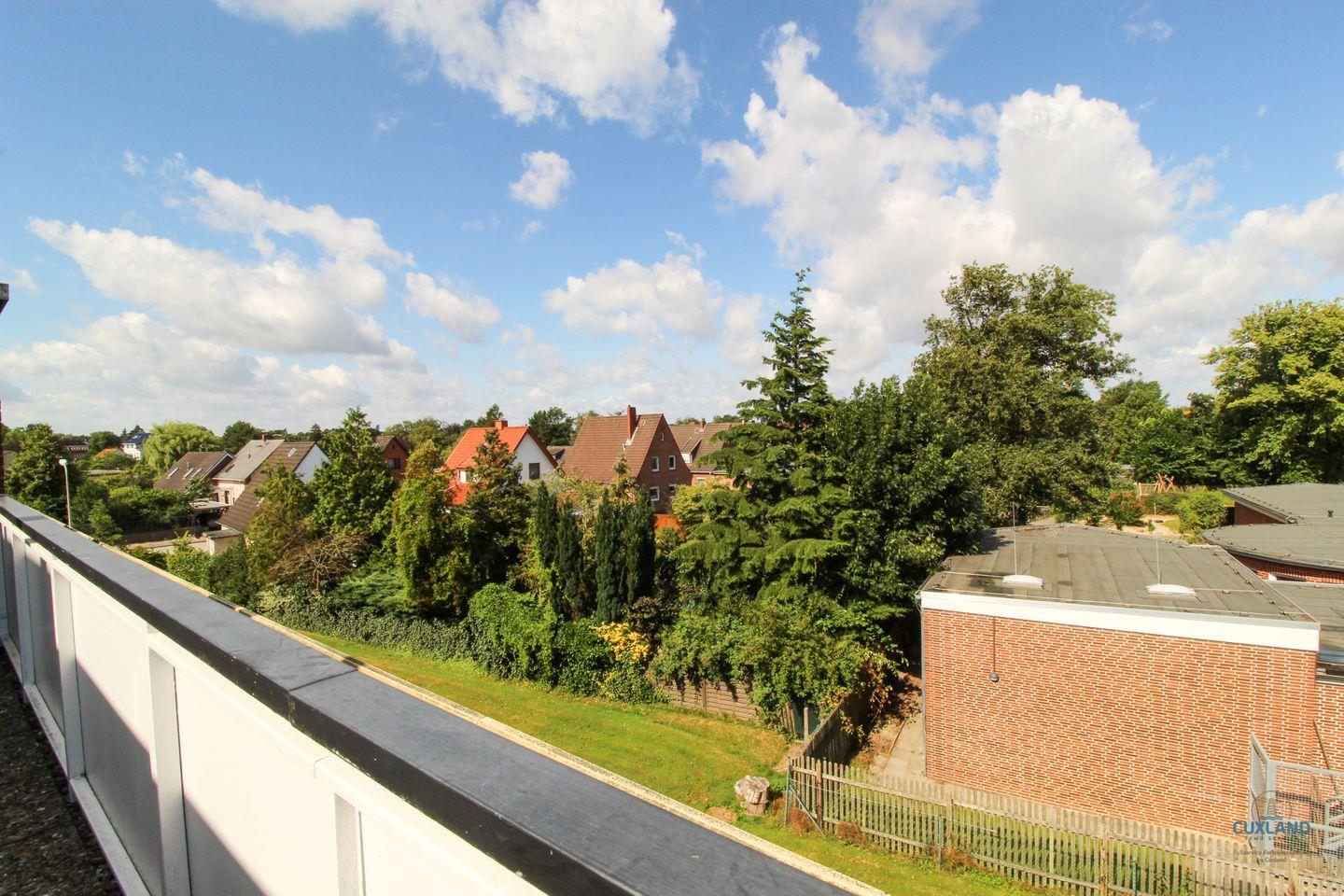 Aussicht ins Grüne. Bei schönem Wetter habt ihr einen großzügigen Balkon auf