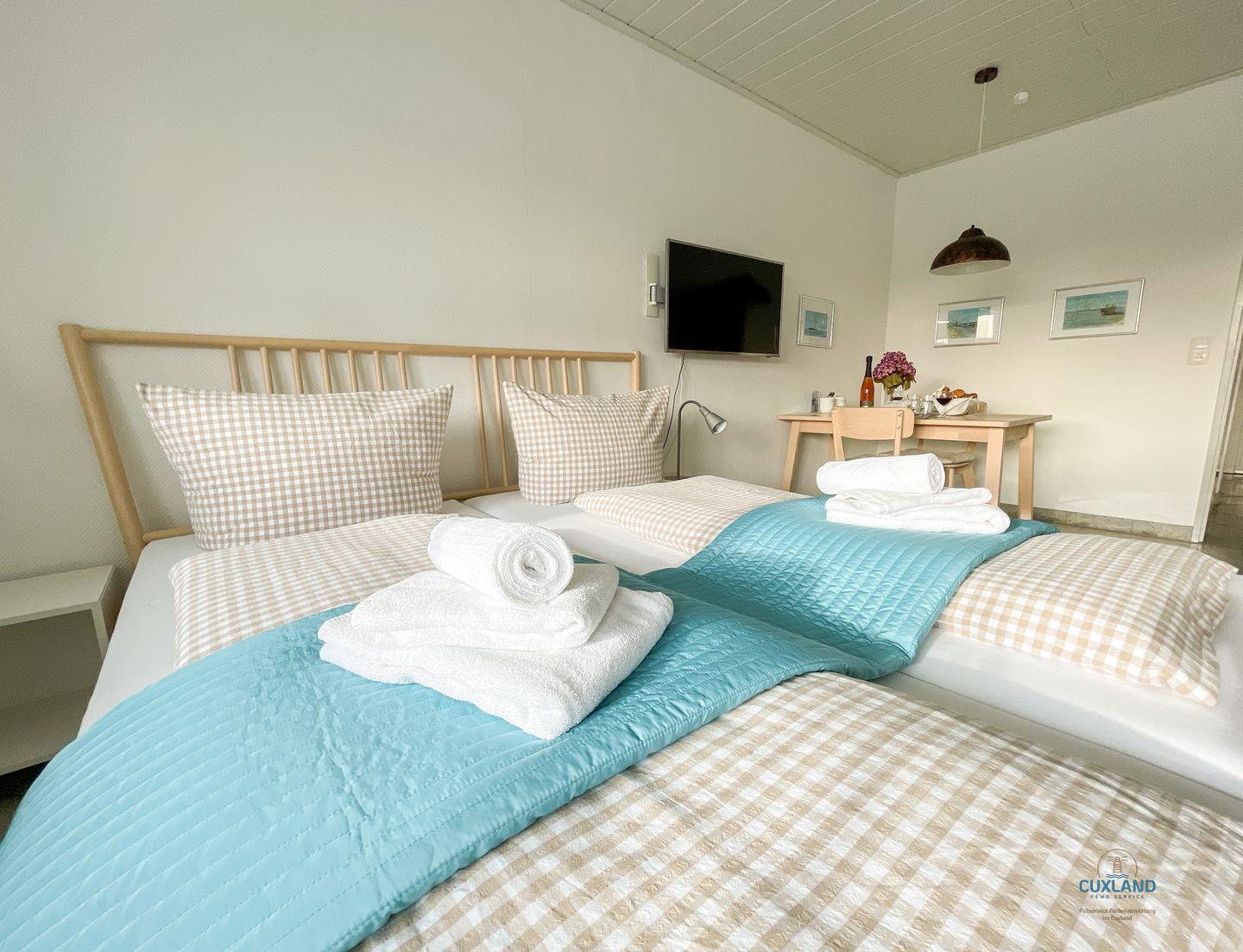 Beispiel Bettwäsche, Handtücher (ab dem 01.09.2026 sind diese beiden Zusatzleistungen inklusive), Kinderstuhl oder Babybett buchen. Solltet Ihr