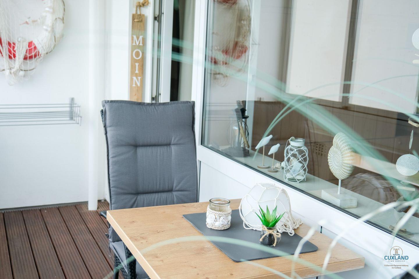 Gemütliches 35qm Apartment im Haus Atlantic, ideal für zwei Personen. Erste Etage mit großem verglasten Balkon für entspannte Stunden. Moderne Kochnische für Snacks und Frühstück. Wohnraum mit gemütlichem Sofa und Schrankklappbett. Kostenfreies WLAN und eigener PKW-Stellplatz vorhanden.