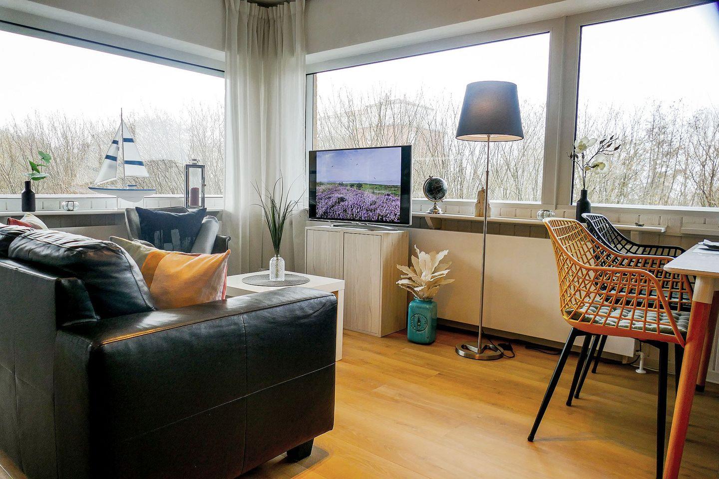 Diese stilvolle Ferienwohnung erstreckt sich über ca. 42m² und ist modern eingerichtet. Sie bietet Platz für bis zu 4 Personen und besticht durch eine umlaufende Fensterfront, die den Raum einladend und lichtdurchflutet erscheinen lässt.