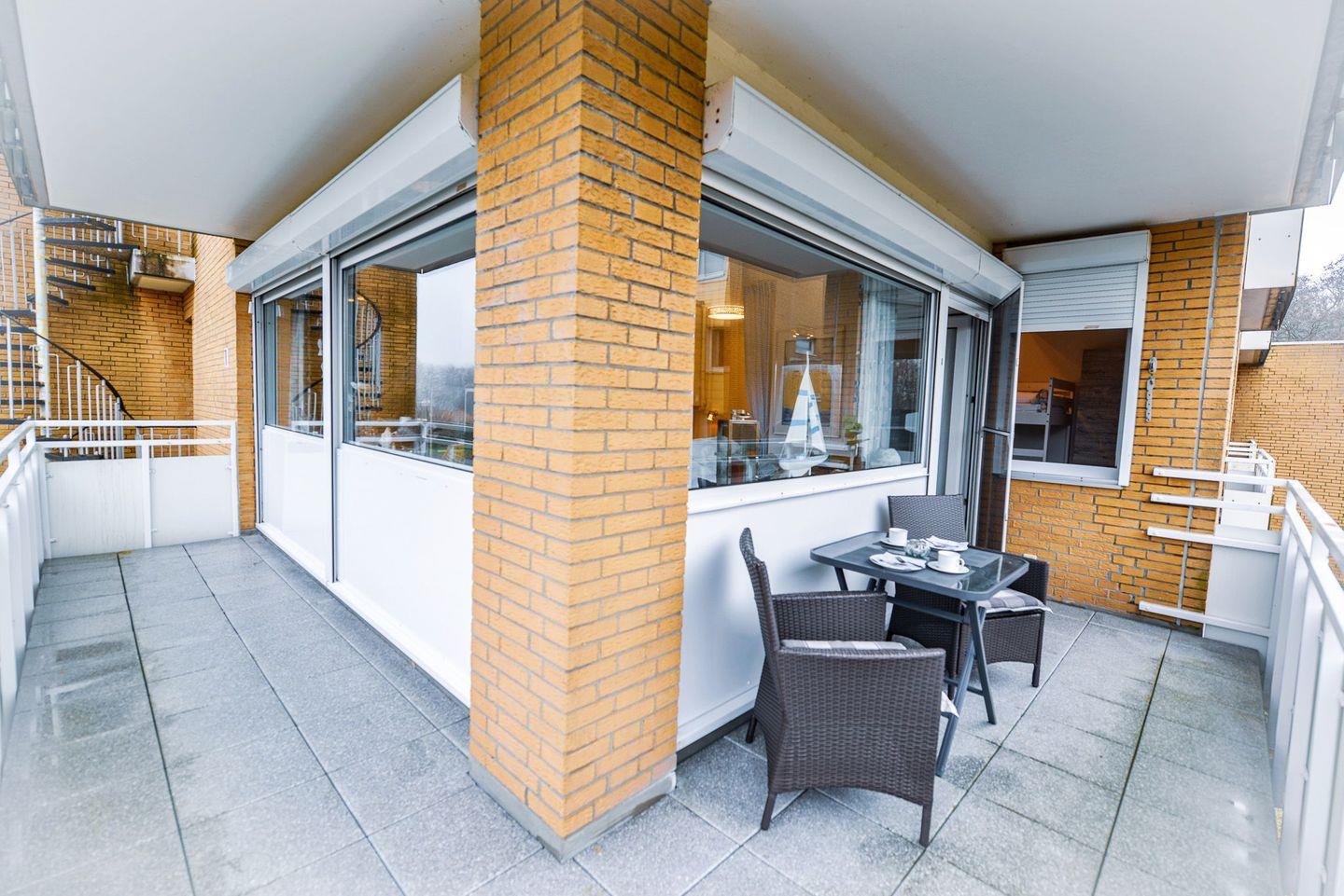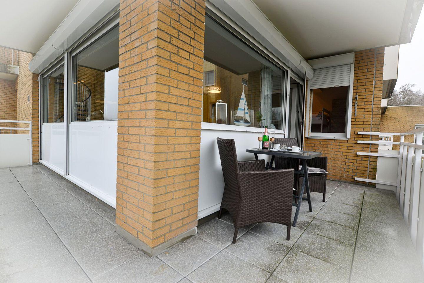 Genießen Sie entspannte Stunden auf dem großzügigen Eckbalkon, der einen herrlichen Blick bietet. Hier können Sie die frische Nordseeluft in vollen Zügen genießen. Zusätzlich laden das hauseigene Schwimmbad und die Sauna (gegen Gebühr) zu Stunden voller Entspannung und Wellness ein.