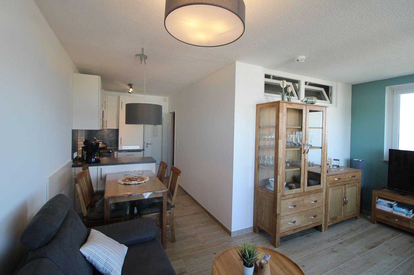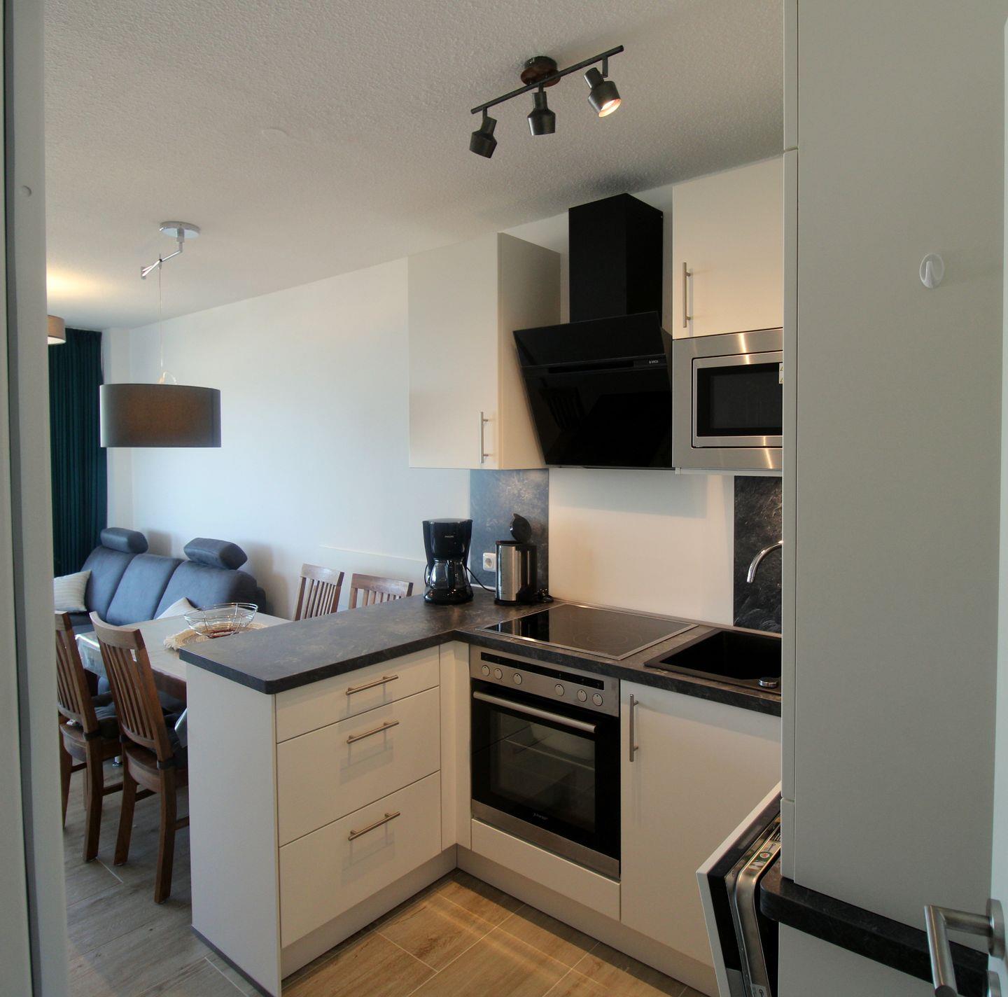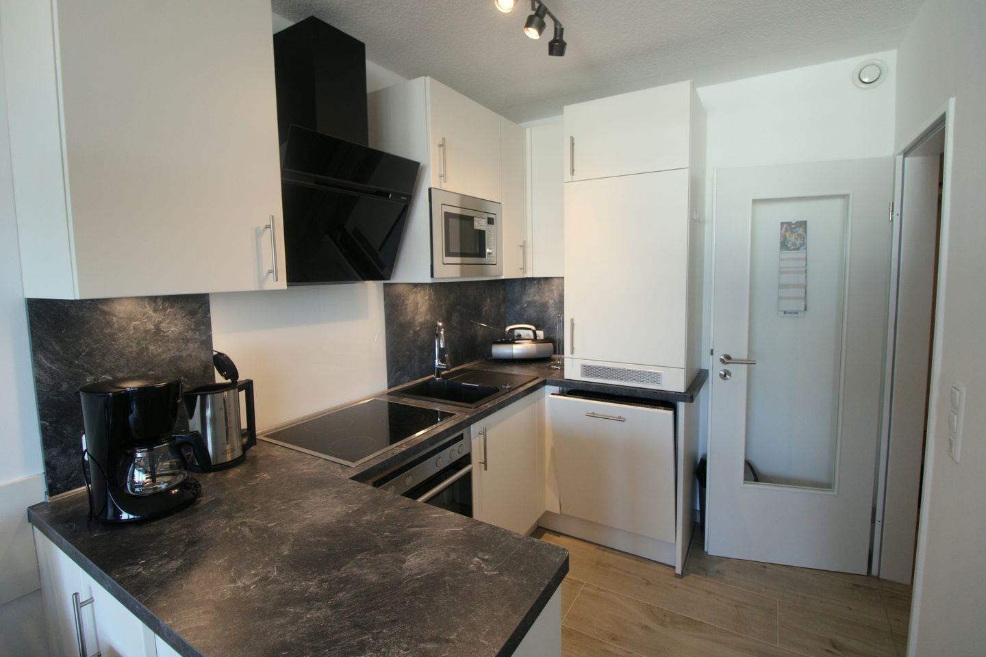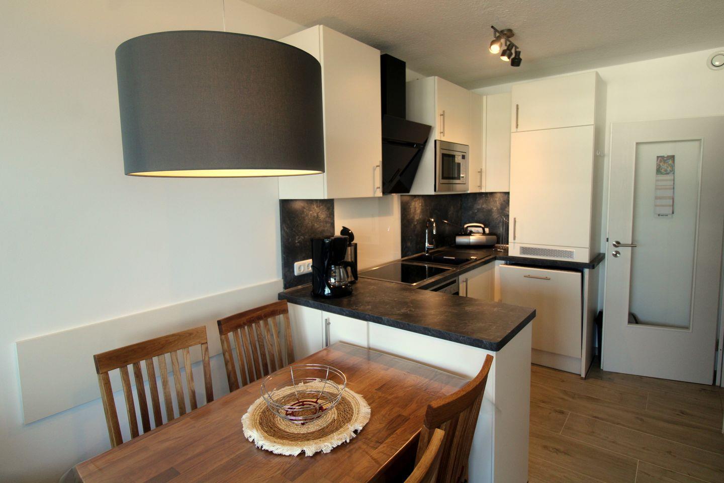Die moderne Küchenzeile ist vollständig ausgestattet mit Ceranfeld, Backofen, Mikrowelle und Geschirrspüler. Zur weiteren Ausstattung gehören LCD-TV, Radio und WLAN.