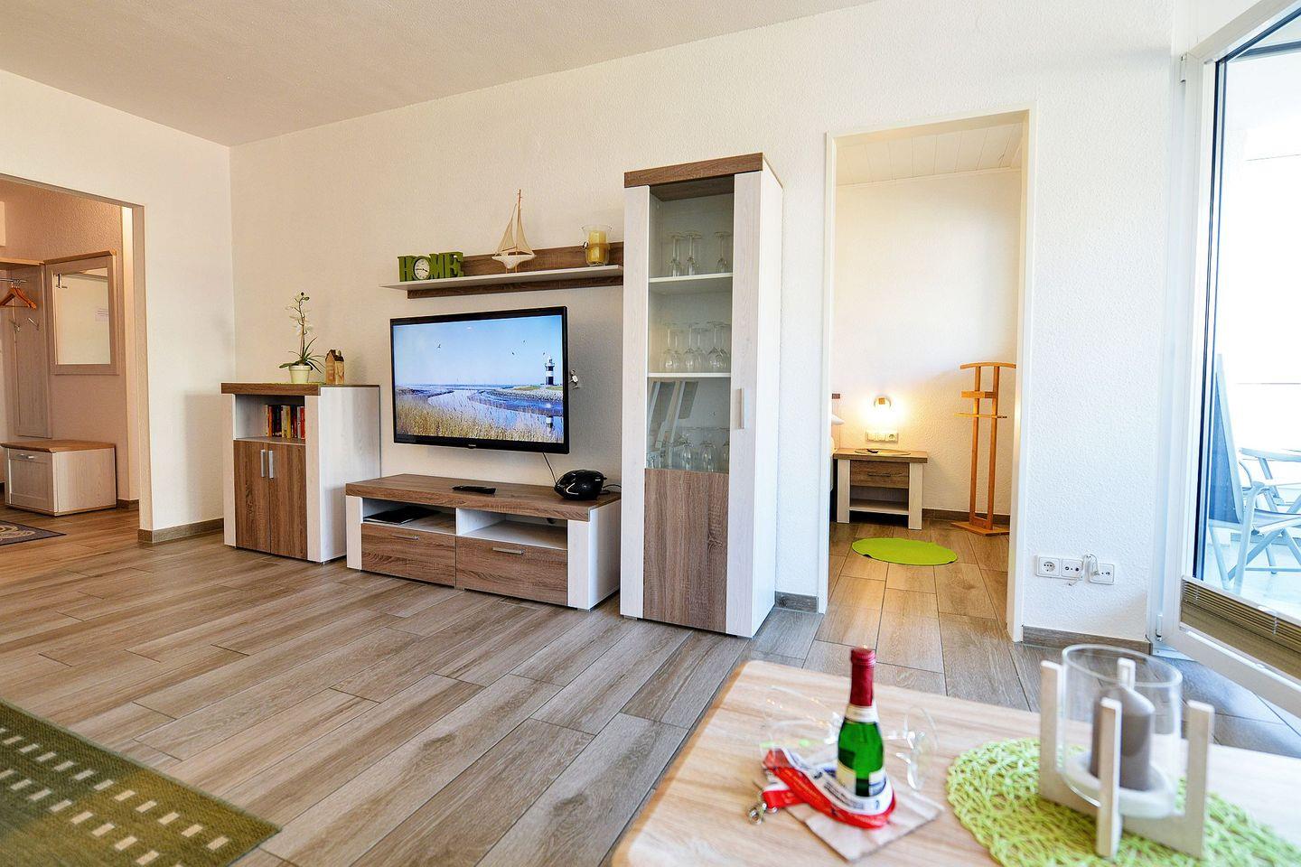 Ausstattung und Einrichtung: Die 50 m² große Ferienwohnung ist modern und mit einem nordischen Touch eingerichtet und bietet bis zu 4 Personen ein entspanntes Urlaubsgefühl direkt an der Nordsee. Genießen Sie Ihre Urlaubstage in vollen Zügen: Erleben Sie lange Strandspaziergänge am nur 150 Meter entfernten Strand, entspannen Sie bei gemütlichen Filmabenden dank der zwei WLAN-fähigen Flatscreen-TVs oder probieren Sie typisch nordische Speisen in der umfangreichen, vollwertigen Küchenzeile aus. Das schöne, neue Badezimmer verfügt über eine großzügige, bodentiefe Dusche und sorgt für eine erfrischende Auszeit. Der überdachte Balkon lädt dazu ein, den Abend an der frischen Meeresluft ausklingen zu lassen und die Aussicht aus dem 3. Stock zu genießen.