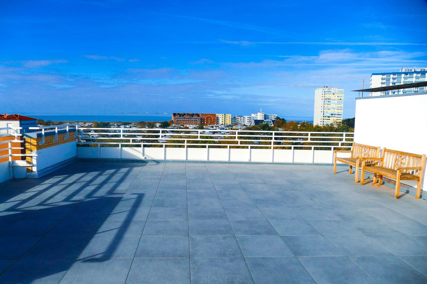 Genießen Sie die frische Nordseeluft auf dem überdachten Balkon und erholen Sie sich im Wellness- und Erholungsbereich der Anlage, der sich im Untergeschoss befindet. Dort stehen Ihnen ein Schwimmbad, eine Sauna und ein Dampfbad zur Verfügung (Sauna und Dampfbad gegen Gebühr).