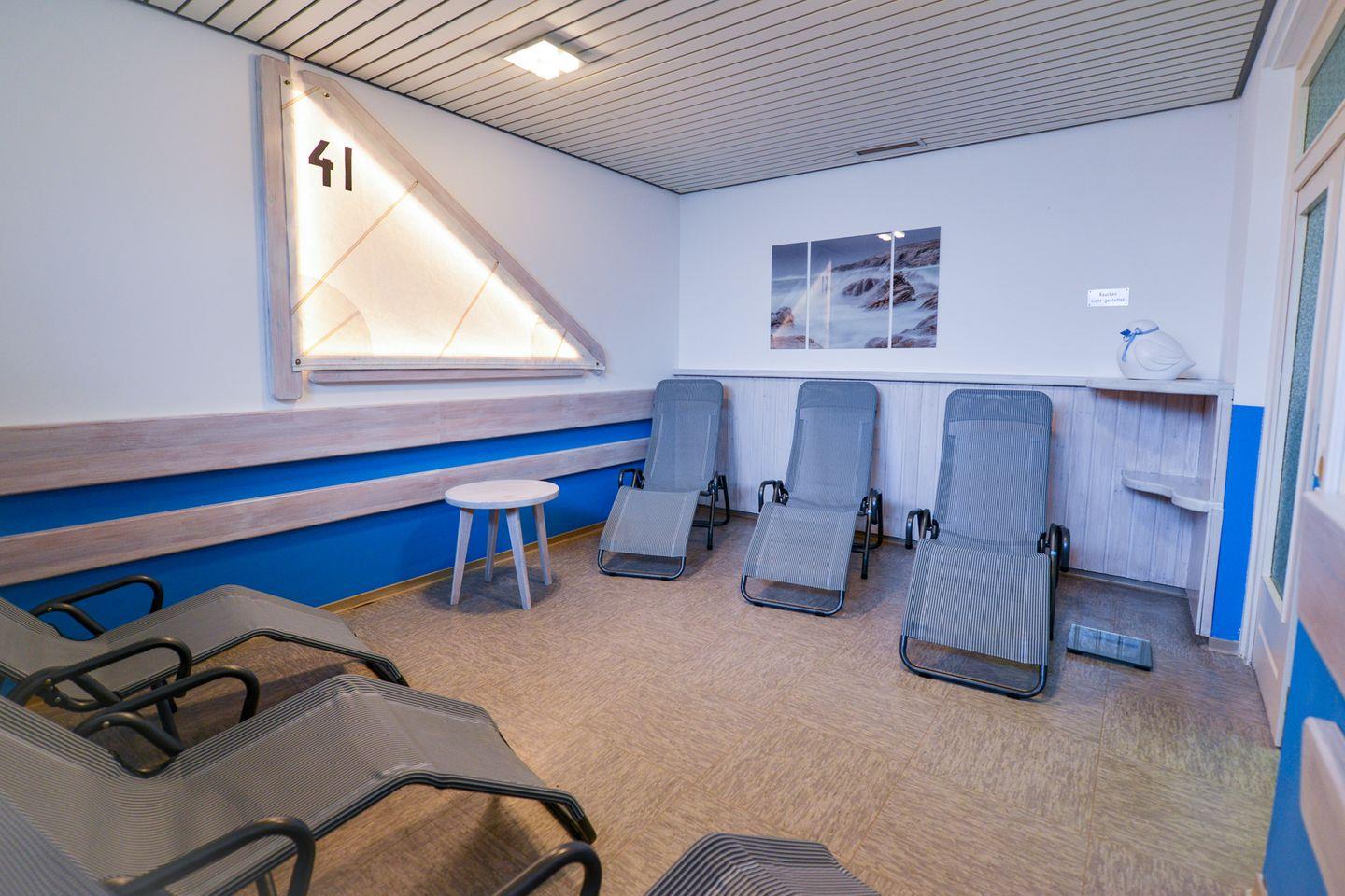 Highlight: Große gemeinschaftliche Dachterrasse mit Seesicht, zwei Strandkörben und zwei Bänken. Im Haus: Wellnessbereich mit 29?°C warmem Schwimmbad, Gegenstromanlage, Sauna, Dampfbad und Ruheraum mit Zugang zum begrünten Außenhof.