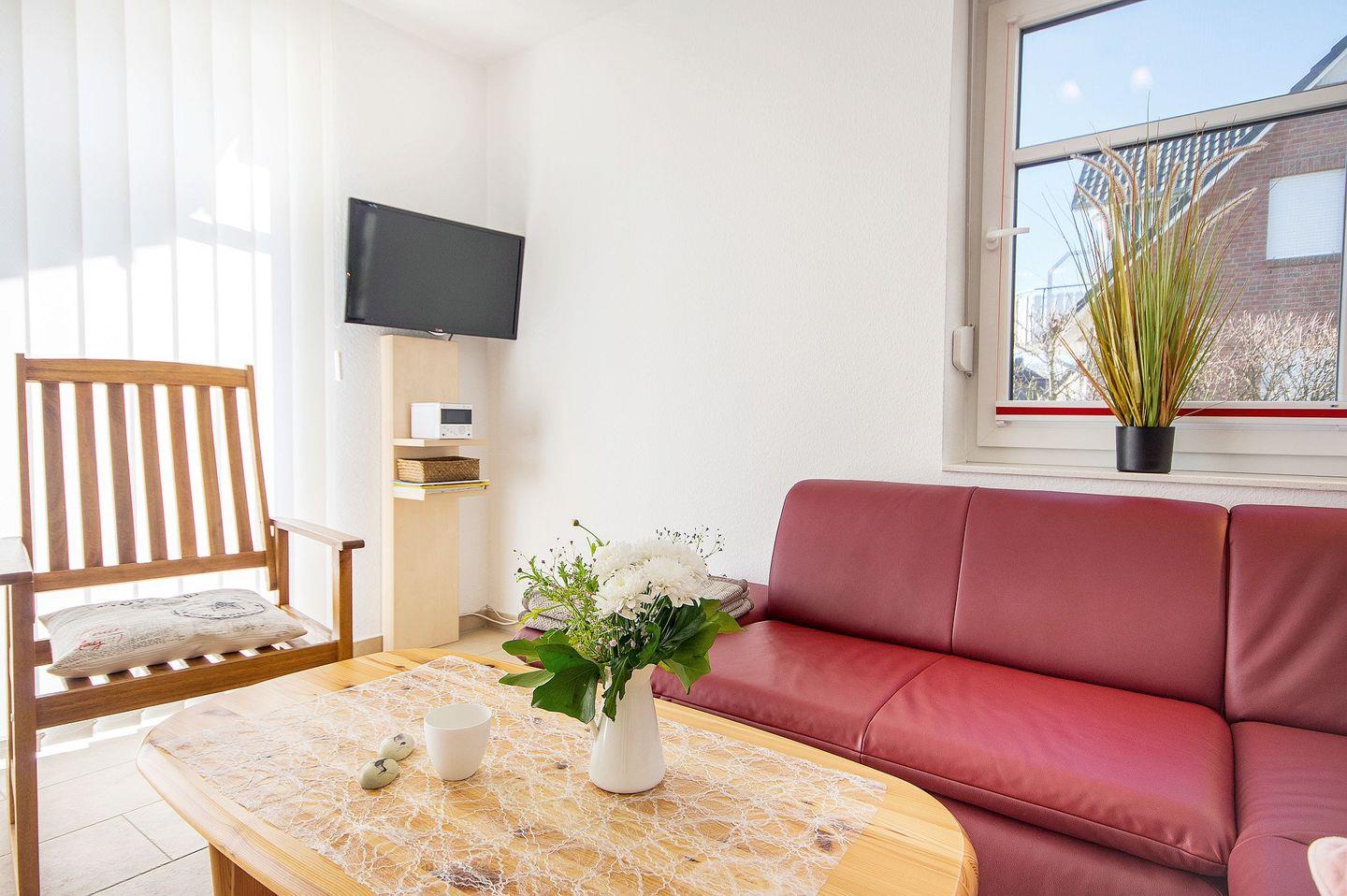Auf ca. 58m² finden Nordseeurlauber mehr als genug Raum, um sich in der modernen und hochwertigen Einrichtung dieser Ferienwohnung wohlzufühlen, die Ihnen einen Urlaub ohne Alltagsstress und Abstriche ermöglicht. Die vollausgestattete Küchenzeile, wie auch das große Bad mit eigener Waschmaschine - sorgen für Wohlgefühl und Erholung in Ihrer Ferienwohnung.