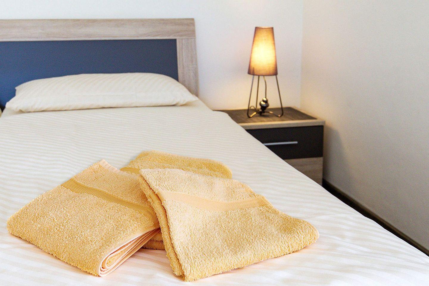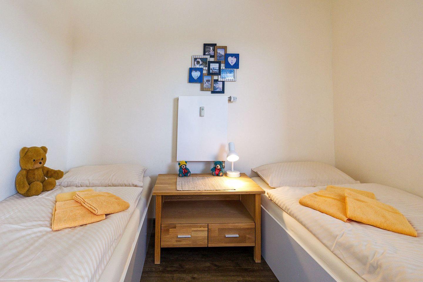 Das 47 m² große, strandnahe Apartment bietet einen Wohn- und Schlafraum mit Doppelbett (1,80 m x 2,00 m), gemütlicher Couch, Esstisch, kostenfreiem WLAN, Smart-TV und Zugang zu einem überdachten Balkon. Eine voll ausgestattete Küche mit Backofen und Geschirrspüler, ein separates Kinderzimmer mit zwei Einzelbetten (je 0,70 m x 1,95 m) sowie ein modernes Duschbad runden das Angebot ab.
