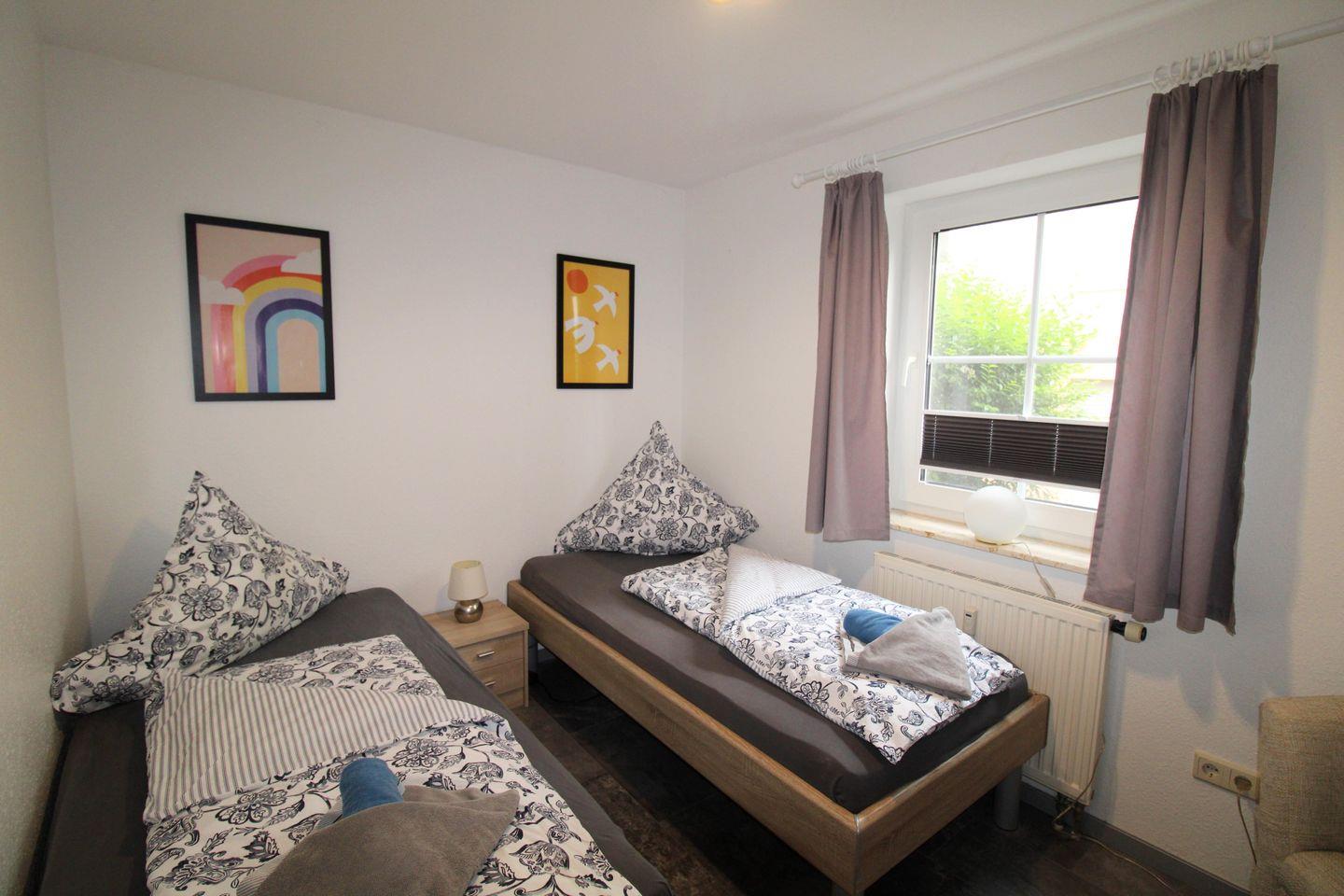 Zwei Schlafzimmer, eines mit Doppelbett und eines mit 2 Einzelbetten.
