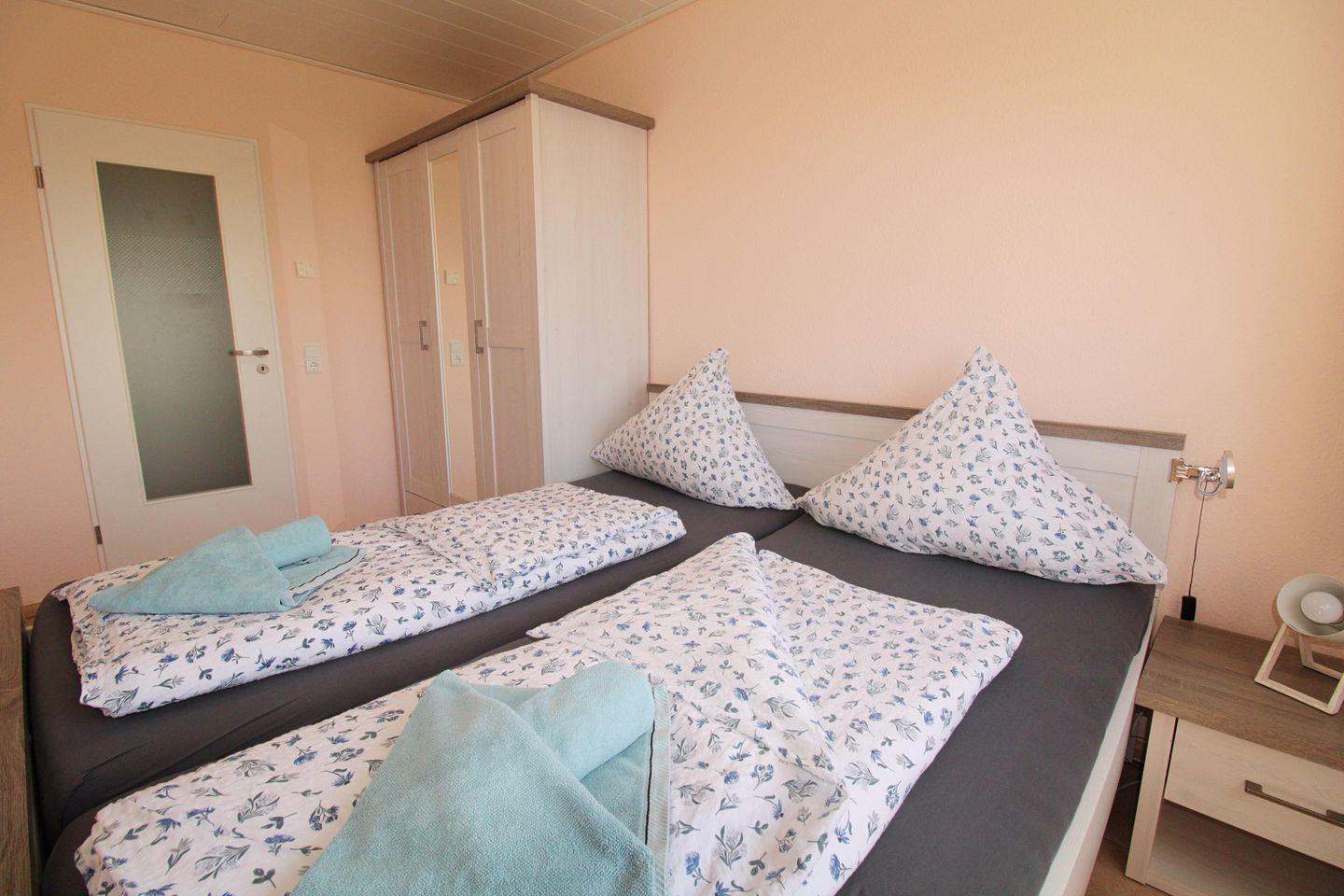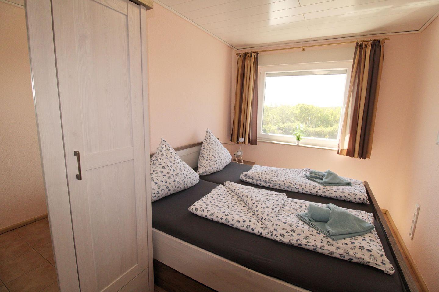 Die Ferienwohnung umfasst drei komfortable Schlafzimmer: Zwei mit großen Doppelbetten und eines mit zwei Einzelbetten. So kannst du dich nach einem erlebnisreichen Tag am Meer auf erholsame Nächte freuen. Die moderne Ausstattung der Wohnung lässt keine Wünsche offen: Ein gemütliches Wohnzimmer mit Sofa und TV, ein Essbereich für gemeinsame Mahlzeiten sowie eine voll ausgestattete Küche mit allem, was du zum Kochen benötigst – vom 4-Platten-Herd über Spülmaschine bis hin zum Kühlschrank mit Gefrierfach. Das moderne Badezimmer ist mit einer Dusche ausgestattet, und für zusätzlichen Komfort sorgen Annehmlichkeiten wie kostenfreies WLAN sowie eine Waschmaschine zur gemeinschaftlichen Nutzung (gegen Gebühr).