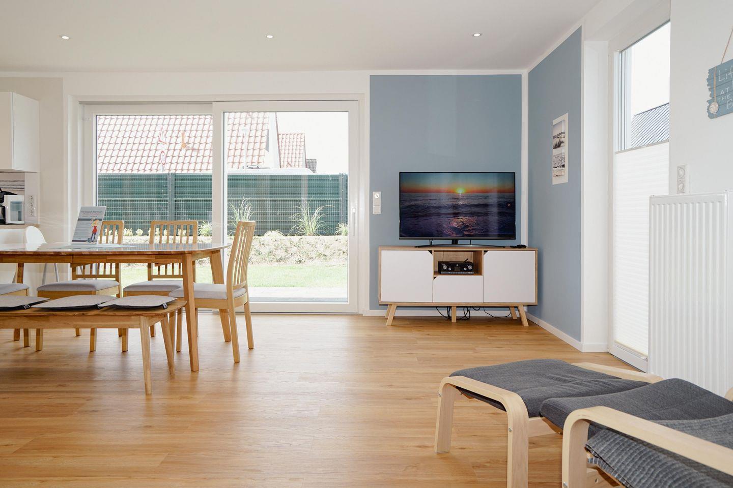Im Erdgeschoss wirst du vom hellen und geräumigen Wohn-/Essbereich empfangen. Ausgestattet mit Sofa, 2 Sesseln und Flachbild-TV - hier darfst du entspannte Stunden genießen.