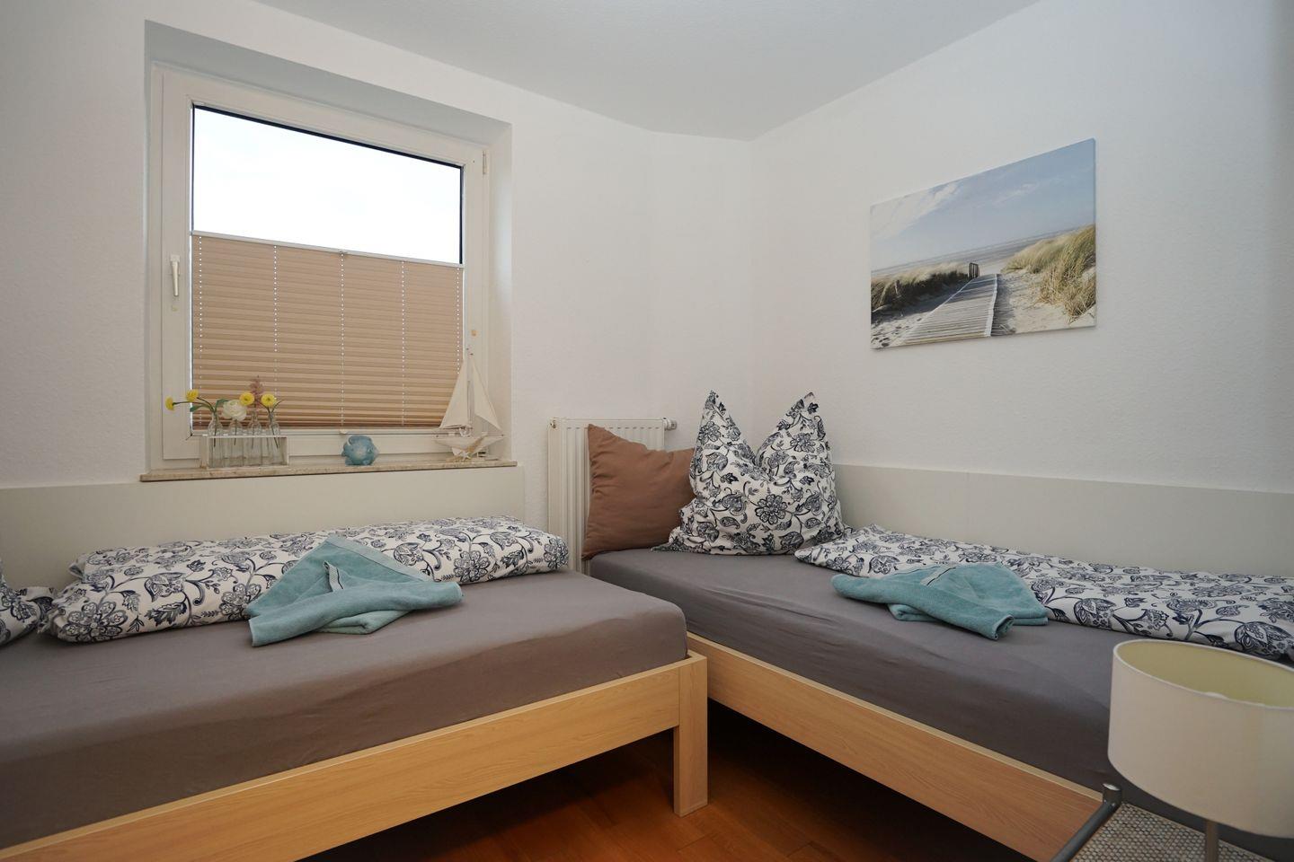 Separates kleines Zimmer mit 2 Einzelbetten, Bad mit Dusche, separates WC, geräumiger Abstellraum.