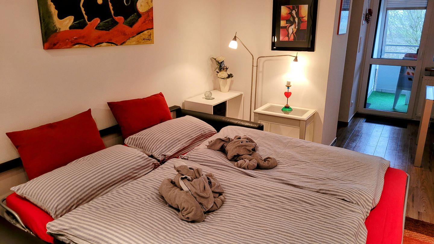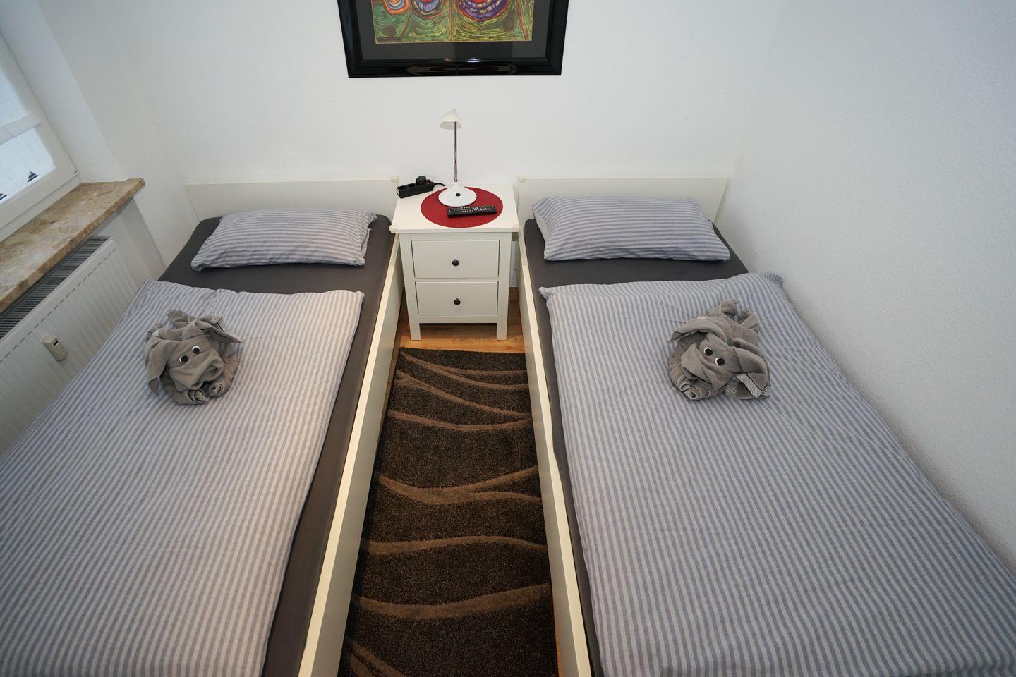 Im Innenbereich erwarten dich bequeme Einzelbetten im Schlafzimmer, alternativ steht dir ein hochwertiges, großes Schlafsofa im Wohnzimmer zur Verfügung. Die kleine, gut ausgestattete Küche ermöglicht es dir, deine Mahlzeiten selbst zuzubereiten, und das Badezimmer mit Badewanne sorgt für zusätzliche Entspannung. WLAN steht dir kostenfrei zur Verfügung, und für dein Auto gibt es einen Stellplatz.