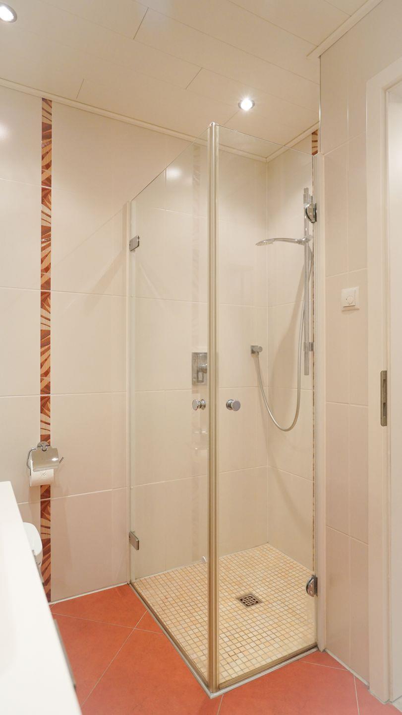 Das Badezimmer ist modern ausgestattet und verfügt über eine ebenerdige Dusche, eine Badewanne, ein WC und ein großes Waschbecken, sodass du dich rundum wohlfühlen kannst. Der Balkon, der mit bequemen Möbeln ausgestattet ist, lädt dazu ein, die Seele baumeln zu lassen und den Blick auf die grüne Umgebung zu genießen.