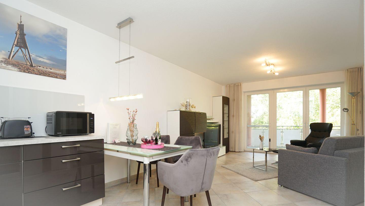In dieser traumhaften Ferienwohnung in Döse, nur 200 Meter vom Sandstrand entfernt, kannst du deinen Urlaub in Ruhe und Natur genießen. Die lichtdurchflutete 2-Zimmer-Wohnung bietet Platz für bis zu vier Personen und einen großen Süd/West-Balkon mit Blick ins Grüne. Der idyllische Kurpark und zahlreiche Freizeitmöglichkeiten sind in der Nähe. Deine vierbeinigen Begleiter sind ebenfalls willkommen. Hier kannst du entspannen und die Seele baumeln lassen.