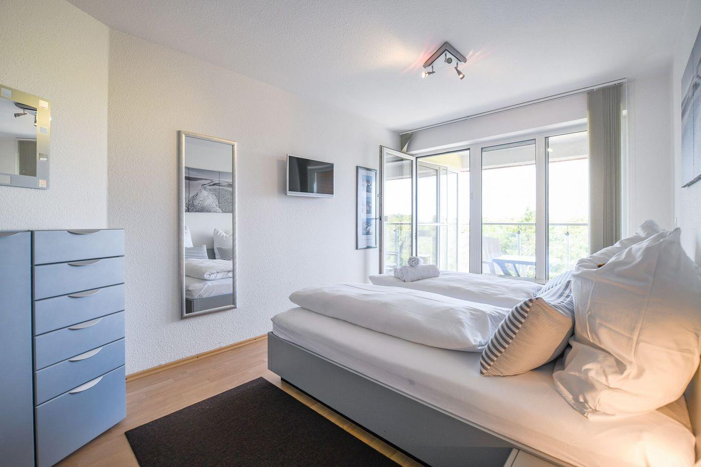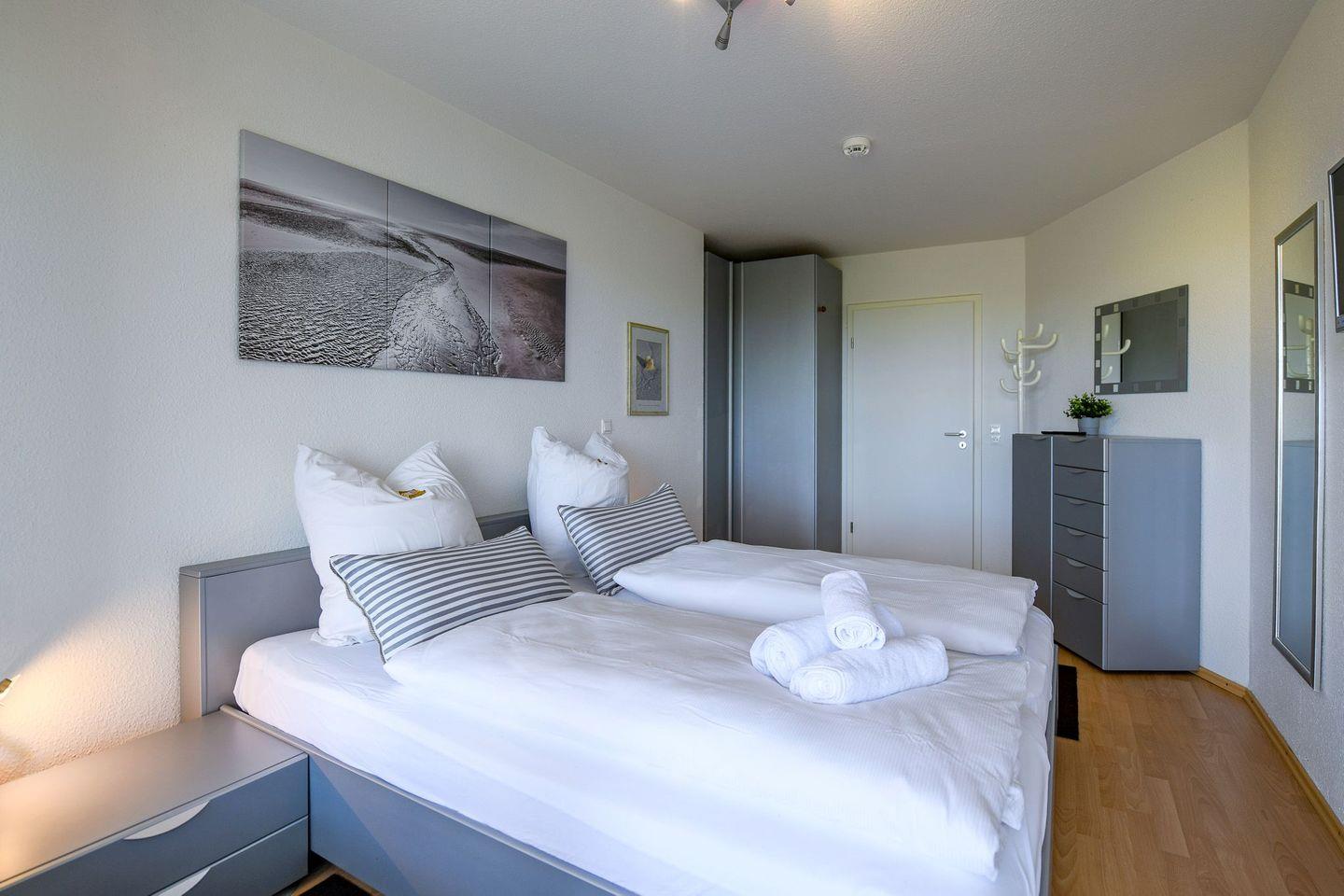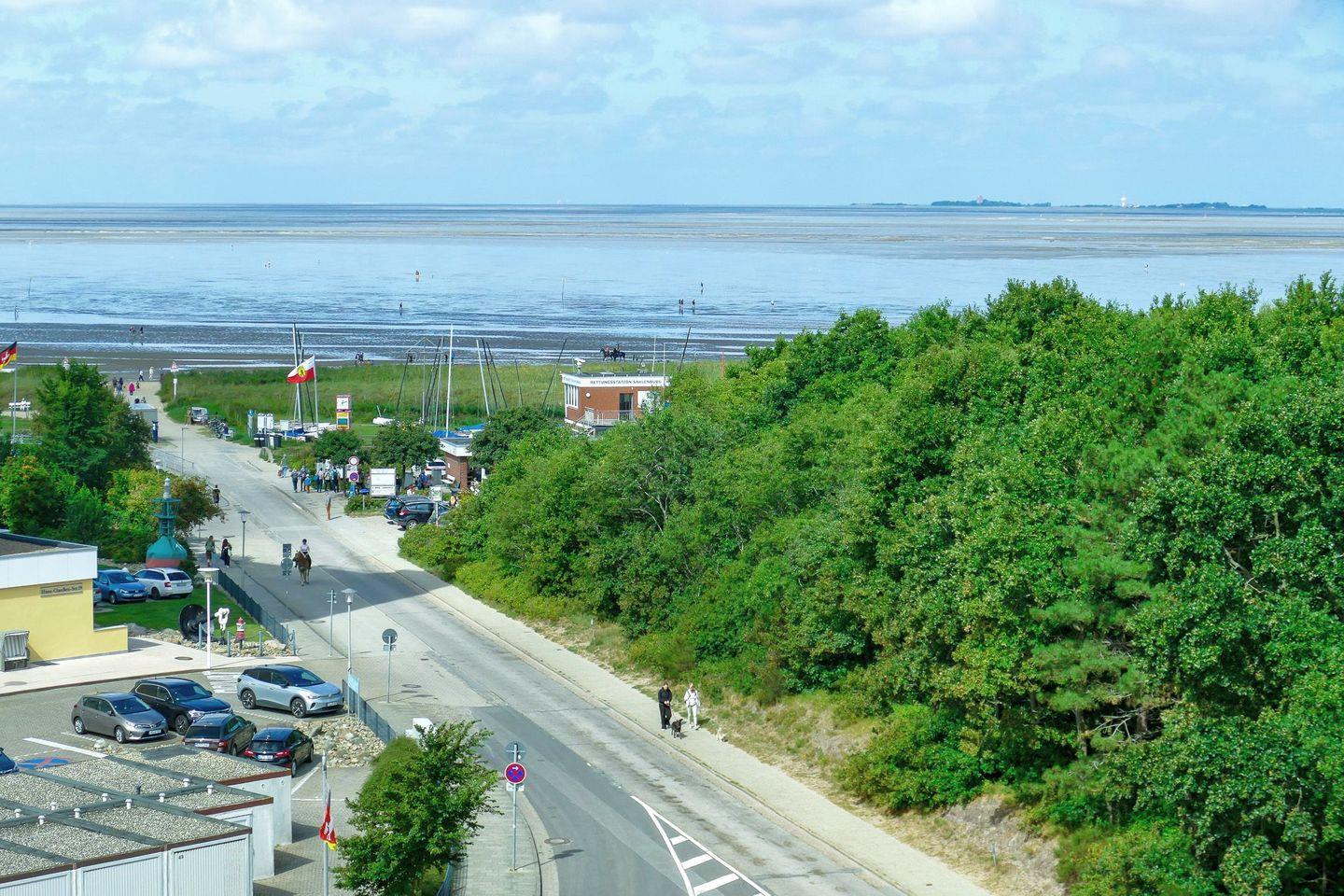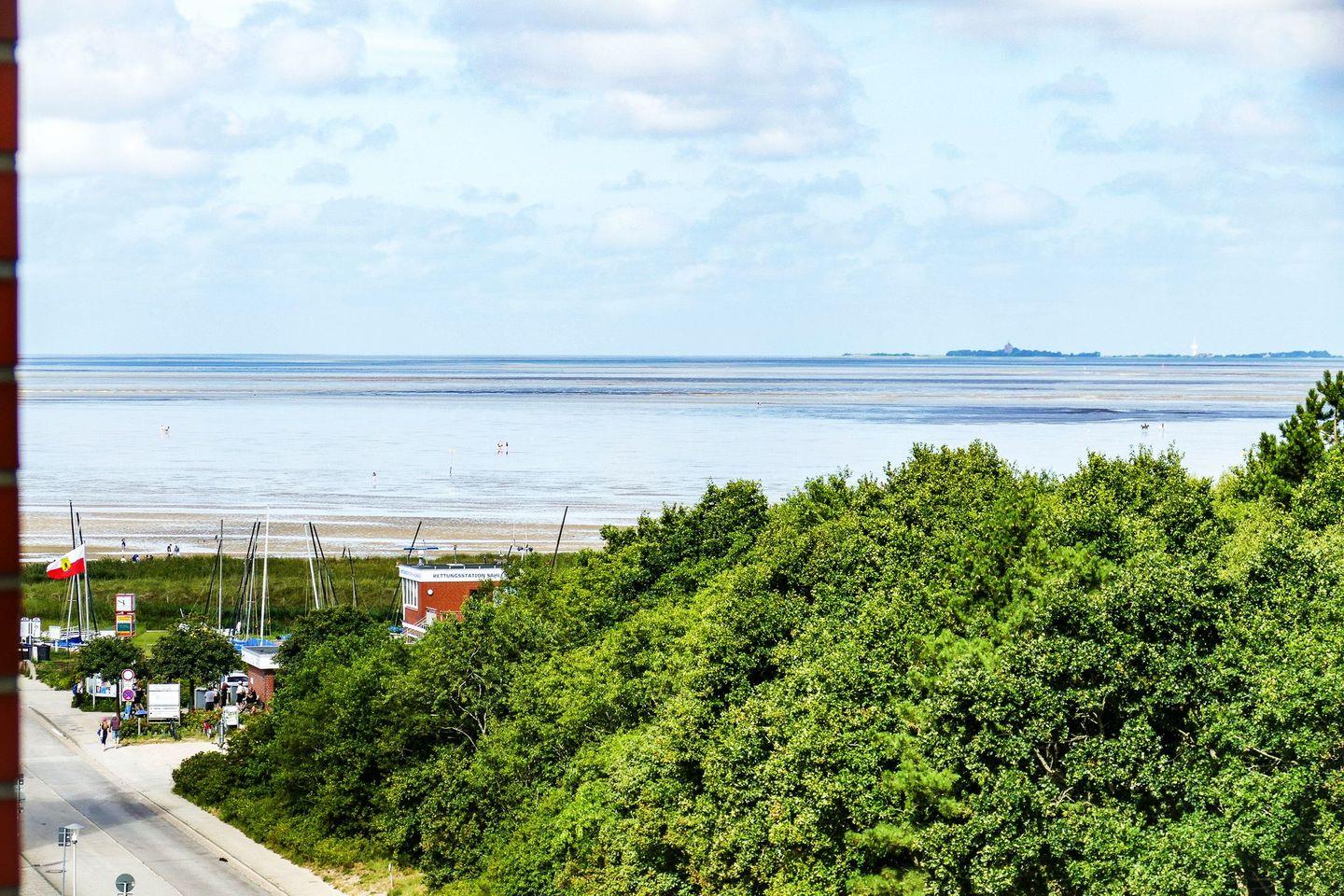 Auf rund 69 m² erwarten Sie zwei separate Schlafzimmer mit je einem Doppelbett, drei Fernseher, kostenloses WLAN und eine voll ausgestattete Küche mit Geschirrspüler, Herd und Kühlschrank. Der überdachte Balkon, zugänglich vom Wohn- oder Schlafzimmer, lädt zu entspannten Stunden ein. Die Wohnung ist haustierfrei und ein Nichtraucherobjekt. Ein Aufzug bringt Sie bequem in den sechsten Stock, ein kostenloser Tiefgaragenstellplatz gehört selbstverständlich dazu. Direkt im Haus finden Sie saisonal einen Bäcker für frische Brötchen am Morgen. Die Lage ist ideal: Nur 200 Meter trennen Sie vom feinsandigen Strand, wo Sie baden, spazieren oder Wassersport betreiben können. In der Umgebung bieten sich Rad- und Wandertouren, Ausritte am Strand oder Ausflüge ins Wattenmeer an. Restaurants,und Cafés erreichen Sie zu Fuß. Genießen Sie erholsame Urlaubstage an der Nordseeküste – komfortabel, zentral und strandnah.