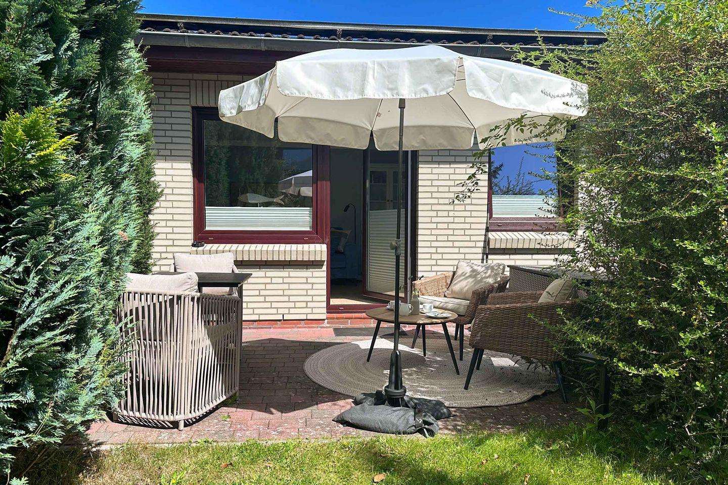 Die Diekhus Ferienwohnung 1 (DH01) bietet Ihnen außerdem eine eigene Terrasse – der ideale Ort, um Ihre Morgensonne beim Frühstück oder Ihre Abendstunden beim Grillen im Garten zu genießen. Für den Grillabend stehen Ihnen Gartenmöbel und ein hochwertiger Grill zur Verfügung. Die ruhige Lage auf einem abgeschlossenen Grundstück und Sichtschutz an allen Fenstern sorgt dafür, dass Sie Ihre Privatsphäre ungestört genießen können.
