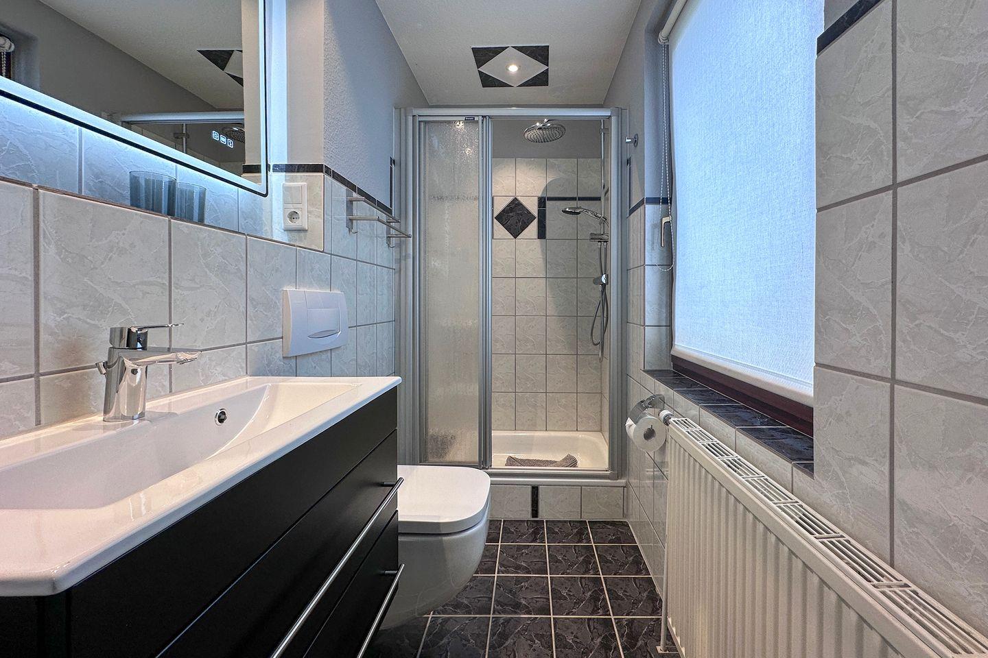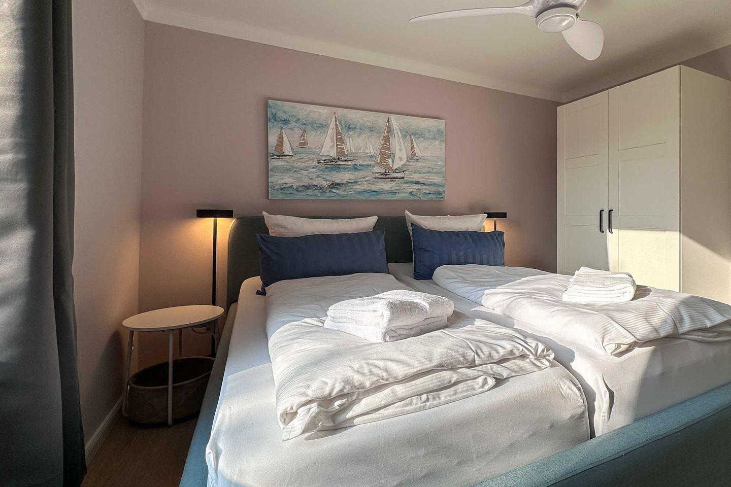 Mit einer Größe von ca. 40 m² bietet die Ferienwohnung Platz für bis zu zwei Personen und ist ideal für Paare. Sie verfügt über ein Schlafzimmer, ein modernes Badezimmer und ein einladendes Wohnzimmer, das mit einem komfortablen Sofa und einem Essbereich ausgestattet ist. Die offene Küche, die nahtlos in das Wohnzimmer integriert ist, ist mit hochwertigen Geräten ausgestattet, darunter ein Induktionskochfeld, ein Kühlschrank mit Gefrierfach, eine Spülmaschine und ein Kompaktbackofen mit Mikrowelle sowie ein Kaffeevollautomat und eine Ninja Doppel-Heißluftfritteuse, so dass Sie auch im Urlaub das Kochen genießen können. Auch das Wäschepaket ist bei dieser Ferienwohnung bereits inklusive.