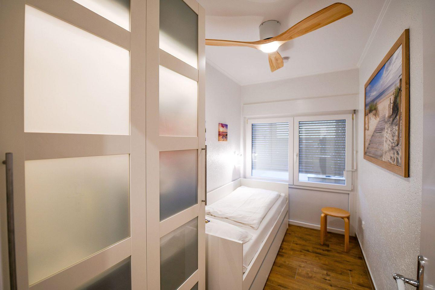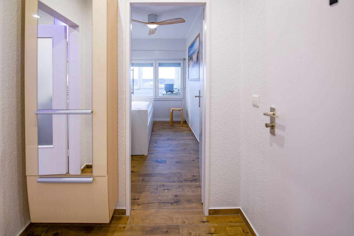 Die Wohnung ist zur Südseite ausgerichtet und verfügt über ein großes Fenster mit Öffnungs- und Schiebefunktion, das einen seitlichen Blick in Richtung Meer ermöglicht. Die Wohnung ist ein Nichtraucherobjekt.