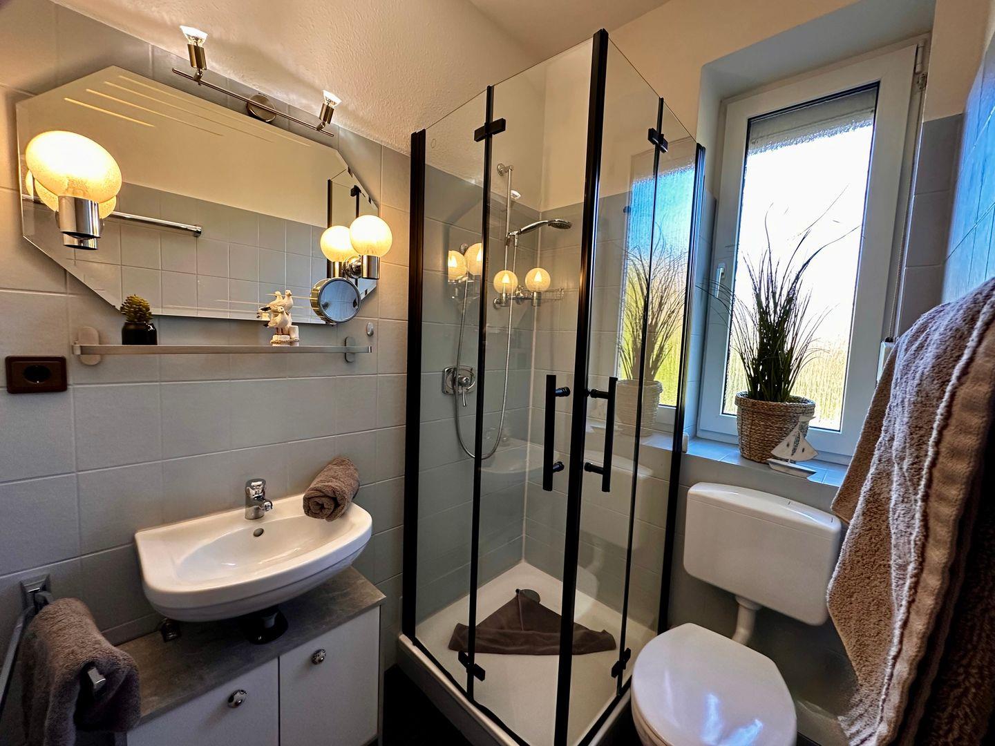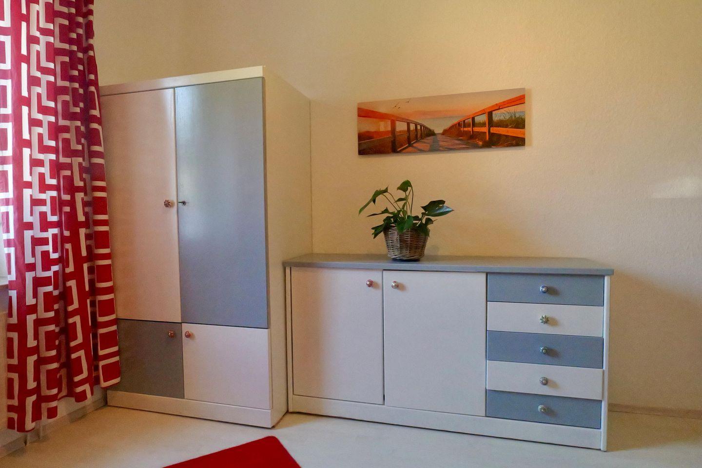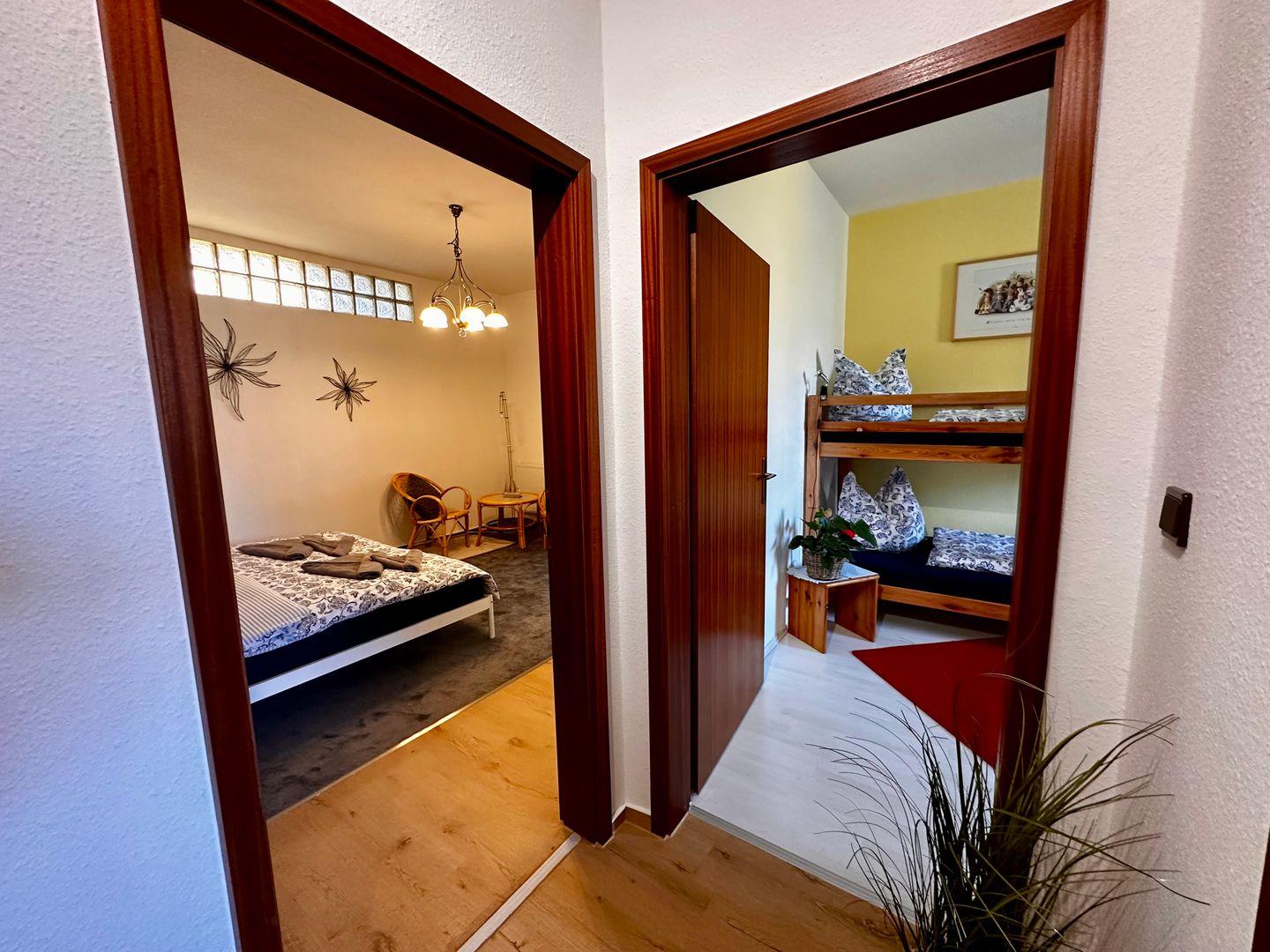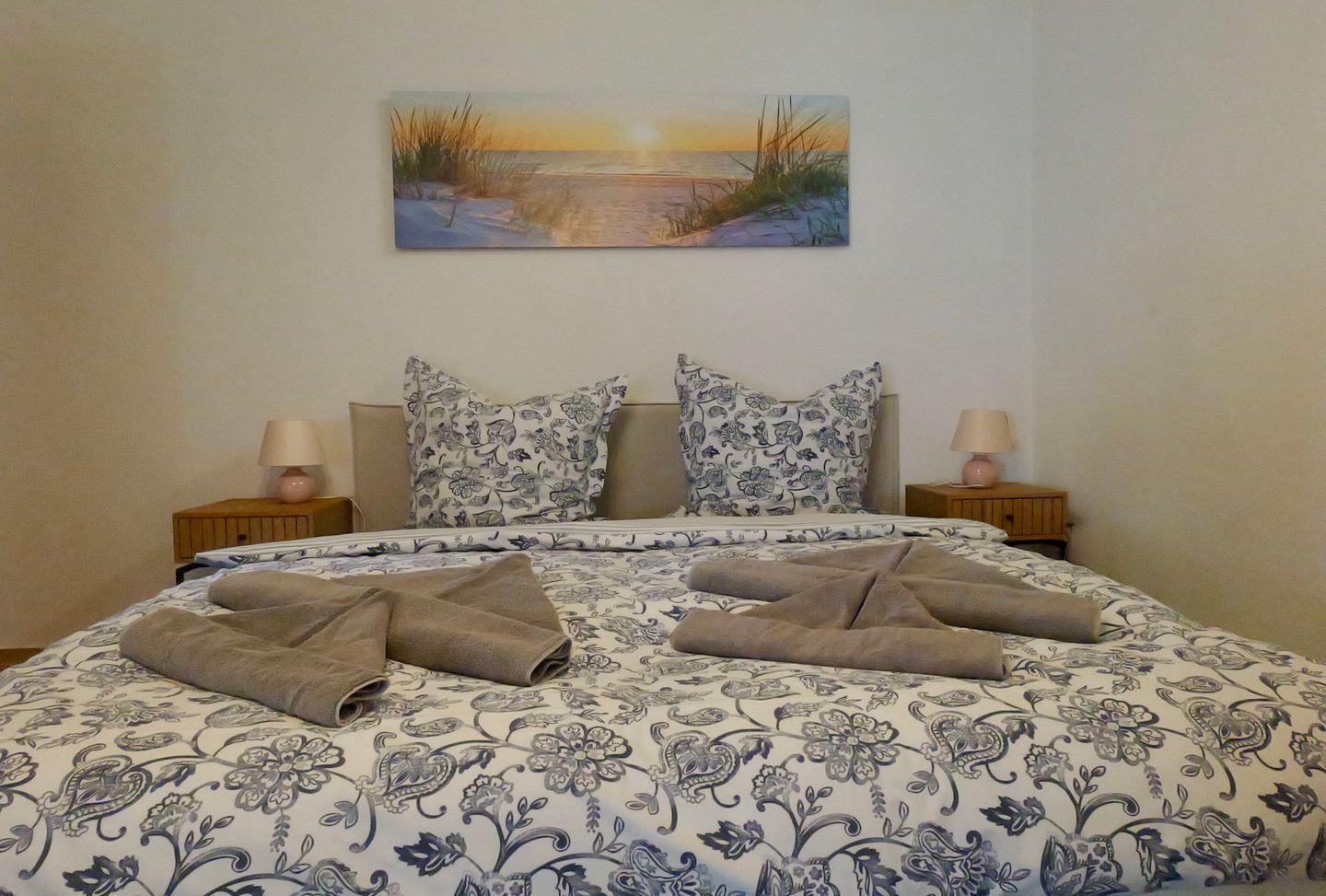 Das Strandgut ist mit zwei komfortablen Schlafzimmern (eines als Durchgangszimmer in den großzügigen Wohn-/Essbereich) ausgestattet, die für erholsame Nächte sorgen. Jedes Schlafzimmer wurde liebevoll eingerichtet und verfügt über ausreichend Stauraum für dein Gepäck. Das Badezimmer ist modern gestaltet und bietet alles, was du für deinen Aufenthalt benötigst. Darüber hinaus erwartet dich ein einladendes Wohnzimmer (über wenige Stufen nach unten zu erreichen) mit einer Sofaecke und einem Essbereich, in dem du gesellige Abende verbringen kannst.