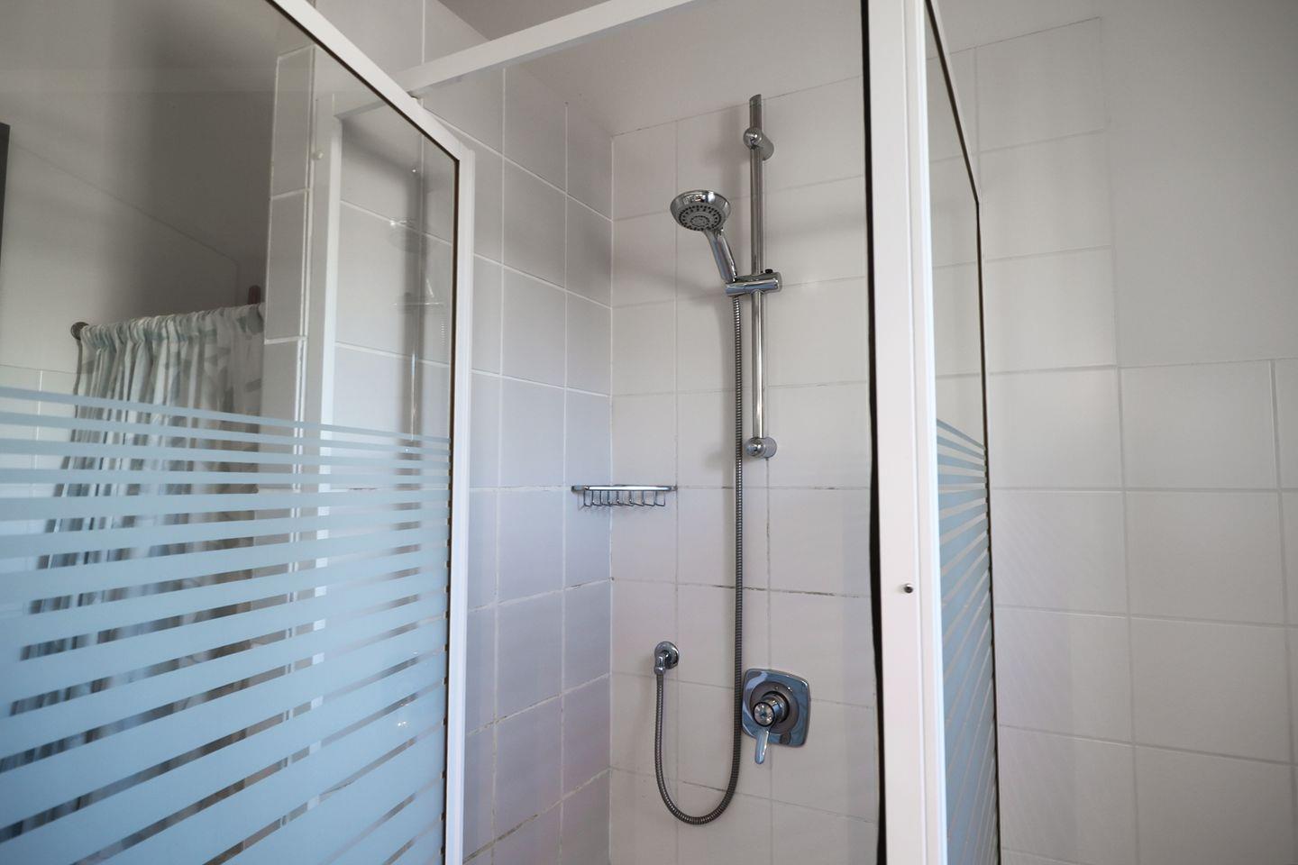 Im modernen Badezimmer findest du eine Dusche und alle Annehmlichkeiten für deine tägliche Erfrischung – kompakt, funktional und gepflegt.