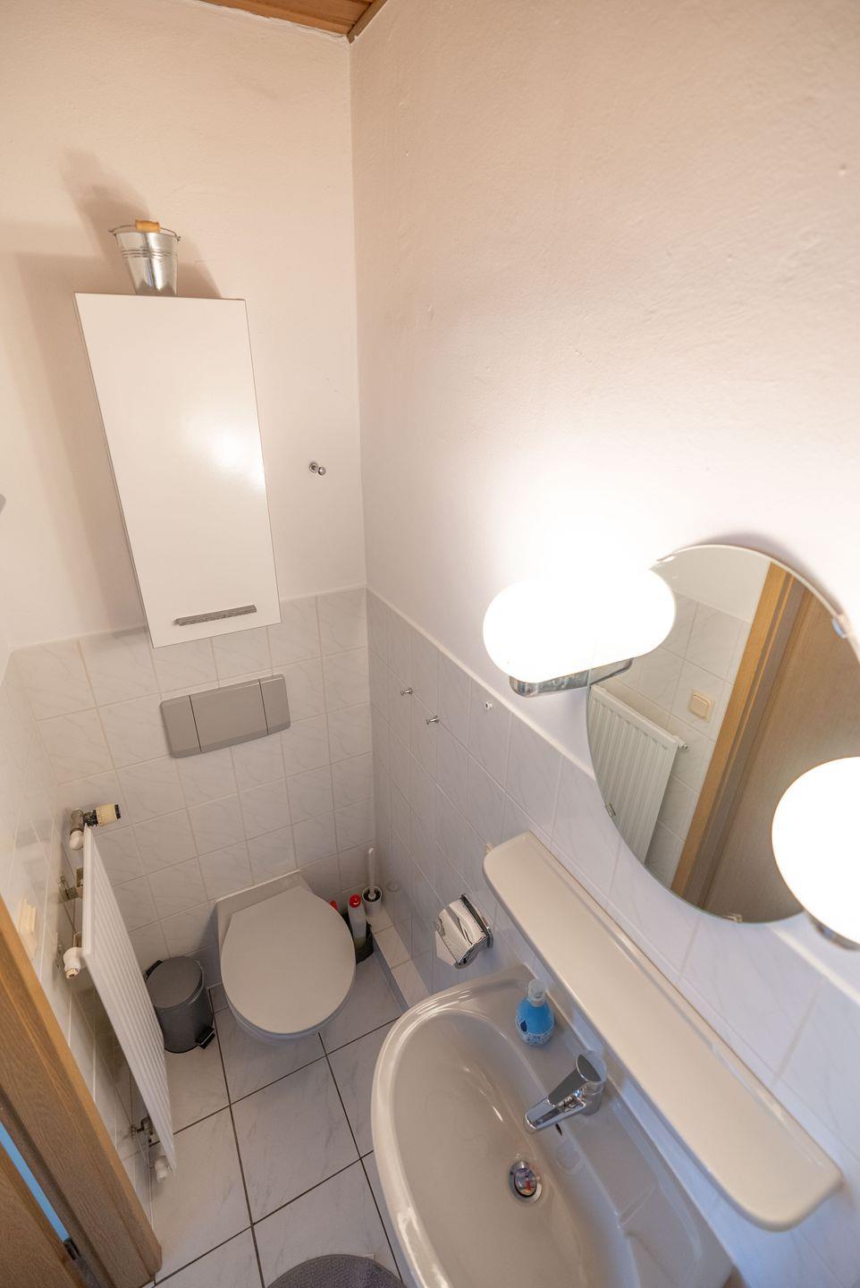 Die 22 m² große Unterkunft bietet Platz für bis zu zwei Personen. Sie verfügt über ein gemütliches Schlafzimmer, ein kleines Badezimmer mit Dusche, WC und Waschbecken sowie eine praktische Kochnische mit 2-Platten-Herd, Kühlschrank, Kaffeemaschine, Wasserkocher und Toaster. Ein Essbereich lädt zu gemeinsamen Mahlzeiten ein, gemütliche Sessel sorgen für entspannte Stunden.
