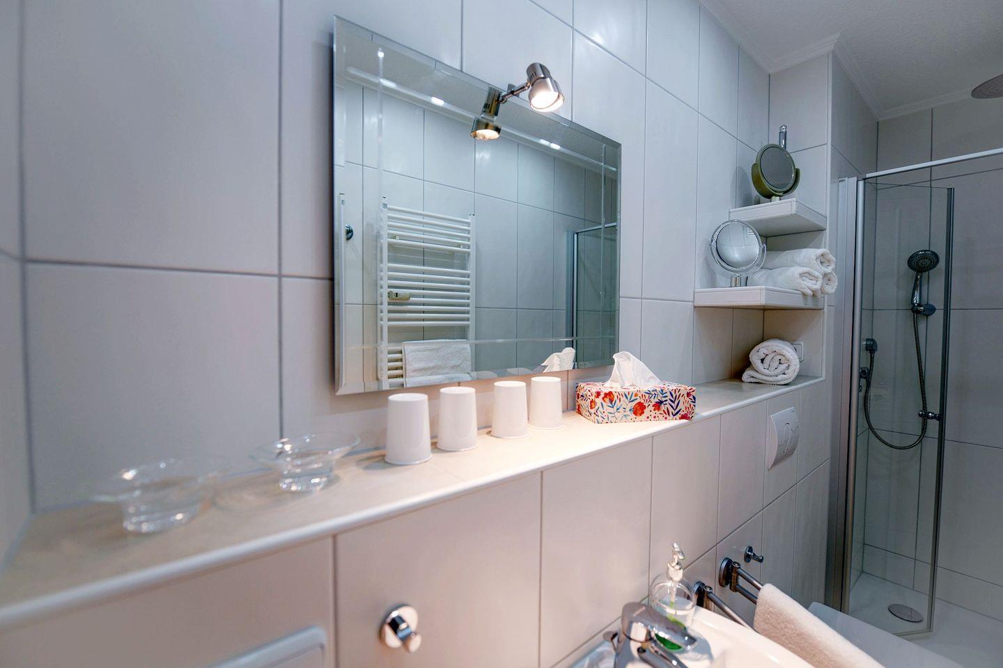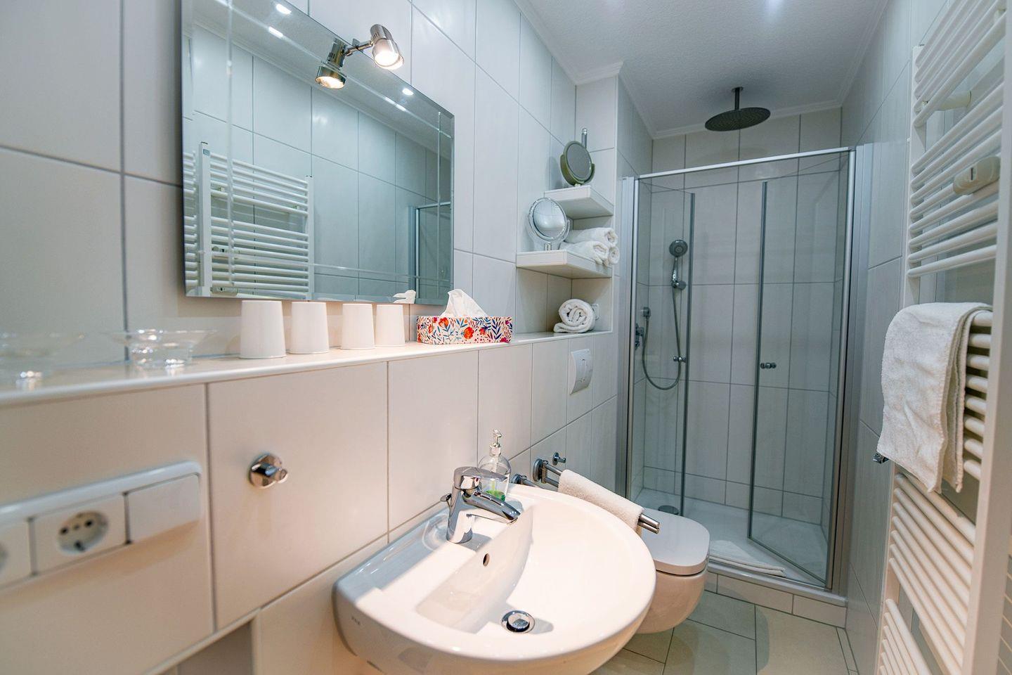 Zur Ausstattung gehört außerdem ein Badezimmer mit Dusche/WC, das zum Entspannen einlädt. Im Haus stehen Ihnen ein Schwimmbad sowie eine Sauna mit Ruheraum zur Verfügung (Saunanutzung gegen Gebühr).