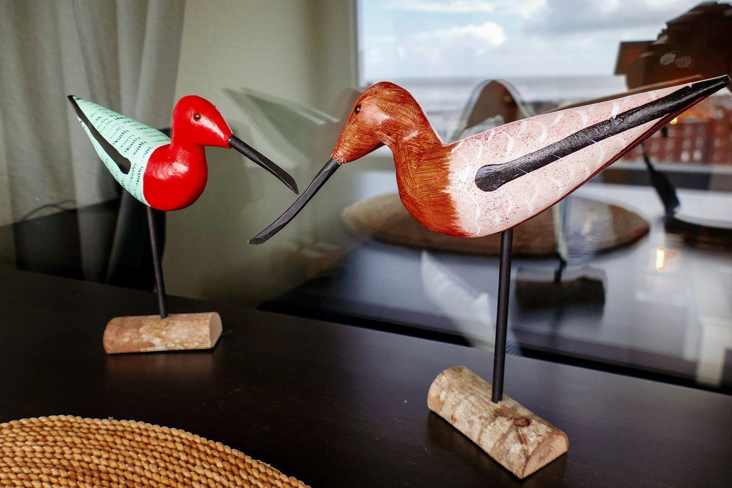 Die moderne Einrichtung und die offene, komplett ausgestattete Küchenzeile laden zum Wohlfühlen ein. Hier beginnt jeder Urlaubstag entspannt – zum Beispiel mit einem Frühstück am Fenster mit Blick auf das Wattenmeer.