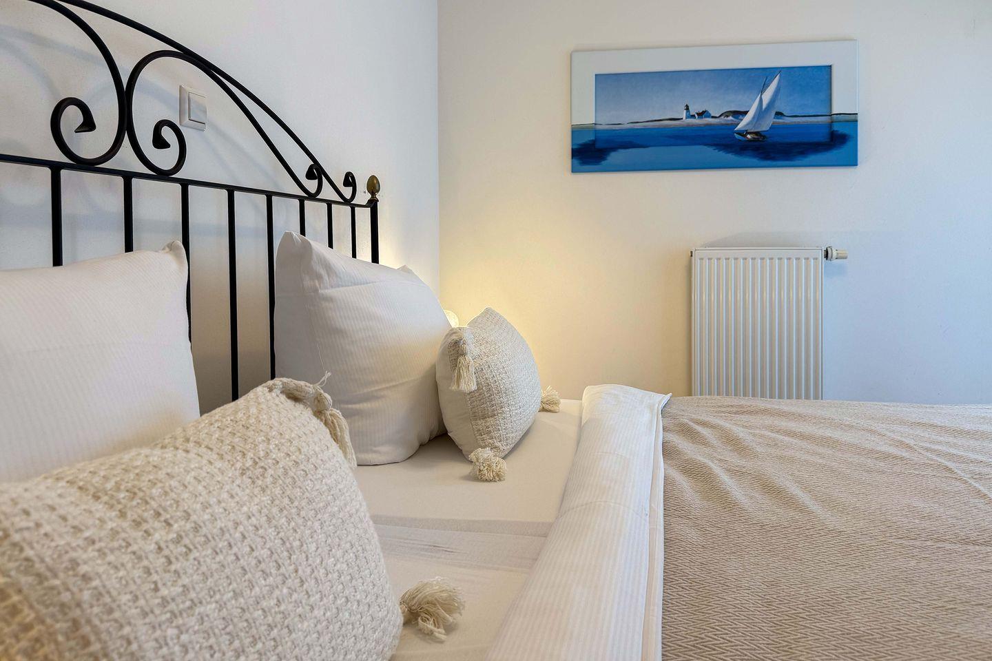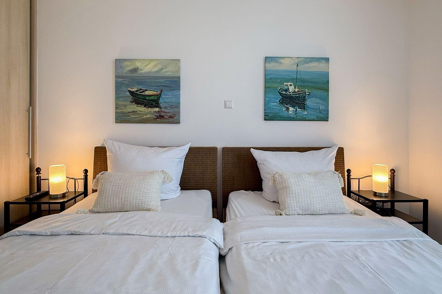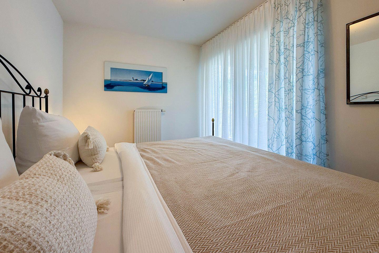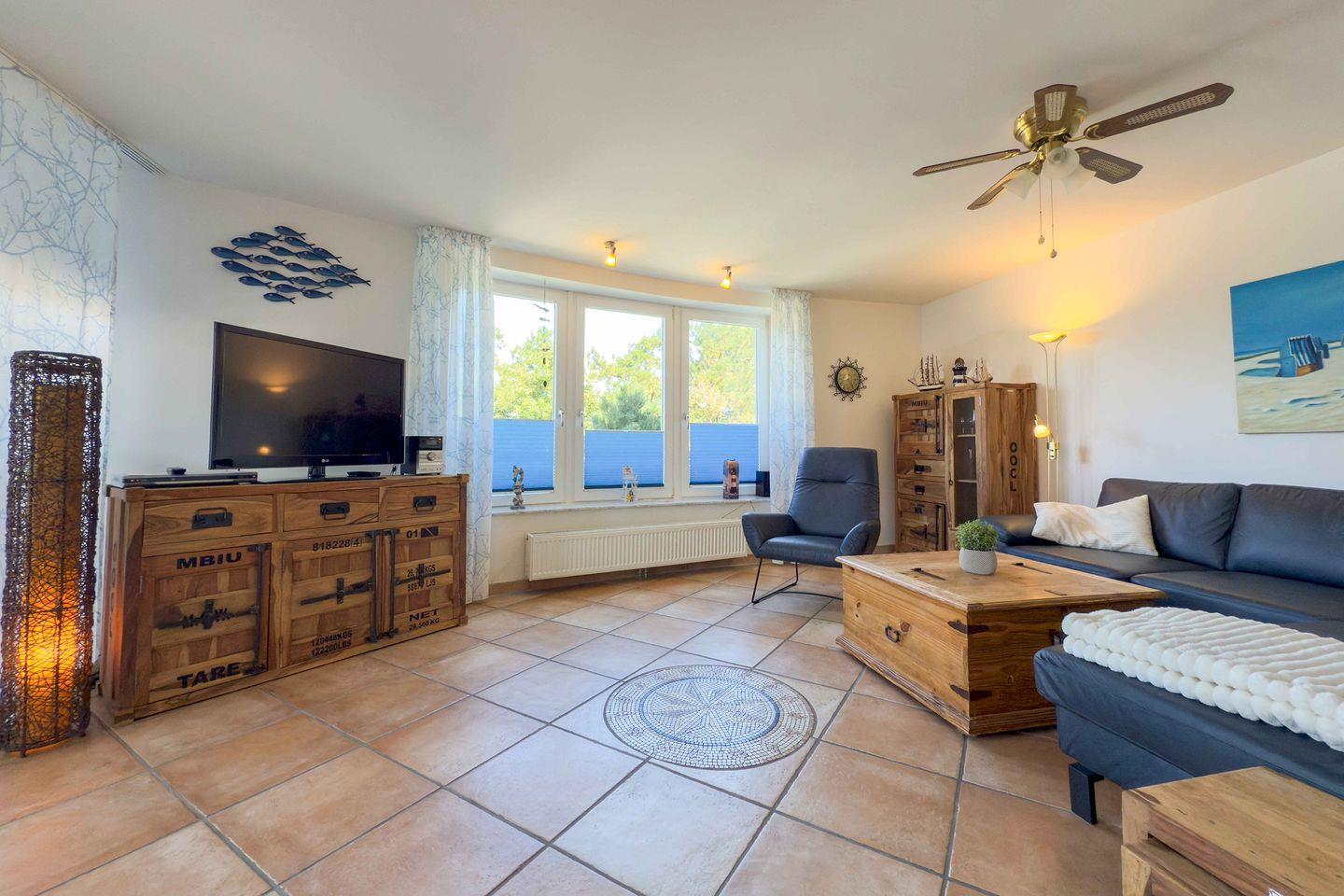 Mit insgesamt 75 m² Wohnfläche, verteilt auf drei Zimmer, zwei separate Schlafzimmer und ein großzügiges Wohnzimmer, finden hier bis zu vier Personen komfortabel Platz. Die gesamte Wohnung ist mit einem pflegeleichten Fliesenboden mit Fußbodenerwärmung ausgestattet. Große Fenster mit Sichtschutz sorgen für Licht und Privatsphäre gleichermaßen. Für einen ungestörten Aufenthalt ist die Wohnung ausschließlich für Nichtraucher vorgesehen.