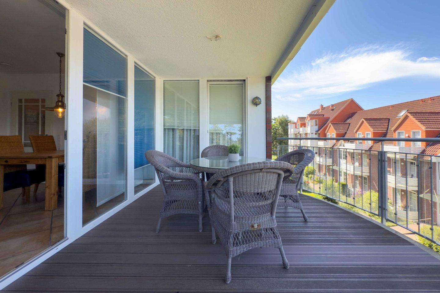 Die Residenz Hohe-Lith Ferienwohnung 124 bietet auf 75 m² ein komfortables Ambiente mit zwei Schlafzimmern, geschlossenem Küchenbereich, bodengleicher Dusche und zwei TVs. Der überdachte Balkon, Privatparkplatz, WLAN sowie Sauna, Infrarotkabine, Dampfbad und ein beheizter Indoor-Pool (bei Verfügbarkeit kostenfrei nutzbar) erfüllen hohe Ansprüche. Der Sandstrand ist nur 200 Meter entfernt.