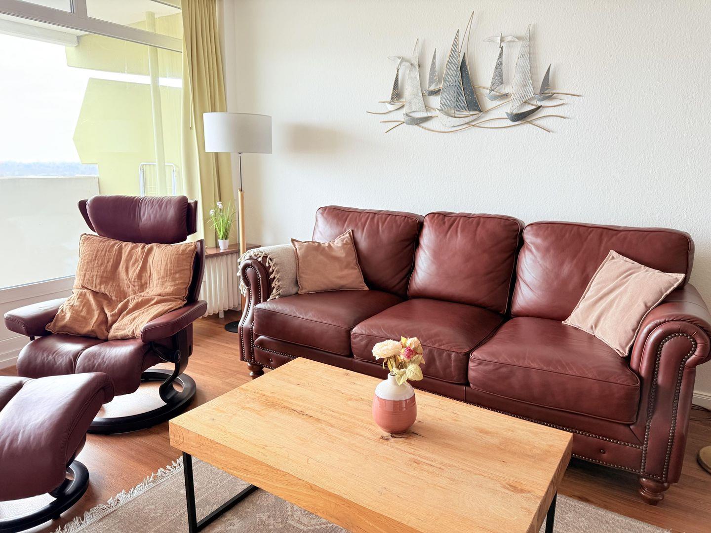 und ein Fernsehsessel mit Hocker zum Füße "hochlegen".