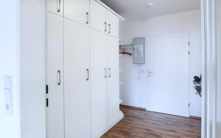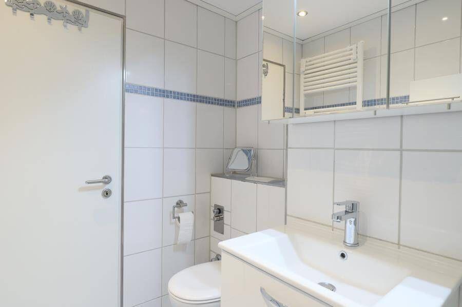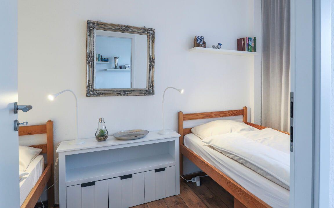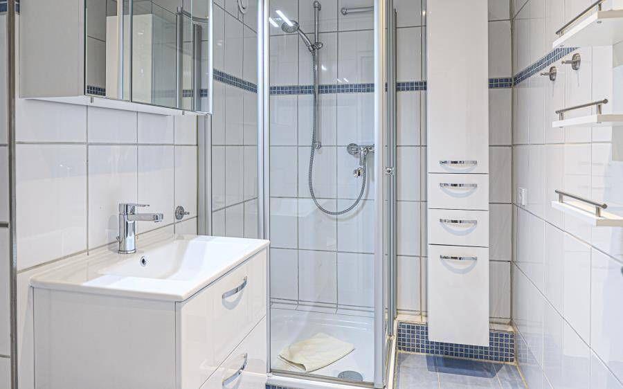 Das separate Schlafzimmer ist allergikerfreundlich ausgestattet. Das Badezimmer verfügt über Dusche mit Wanneneinstieg, WC, Waschbecken und Haartrockner.