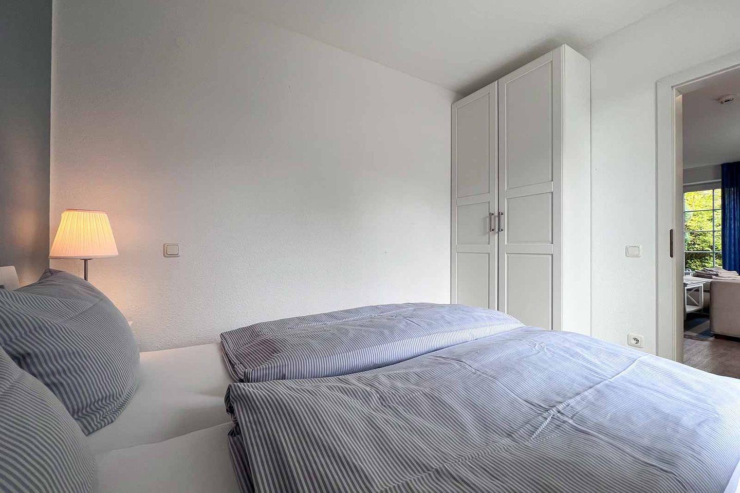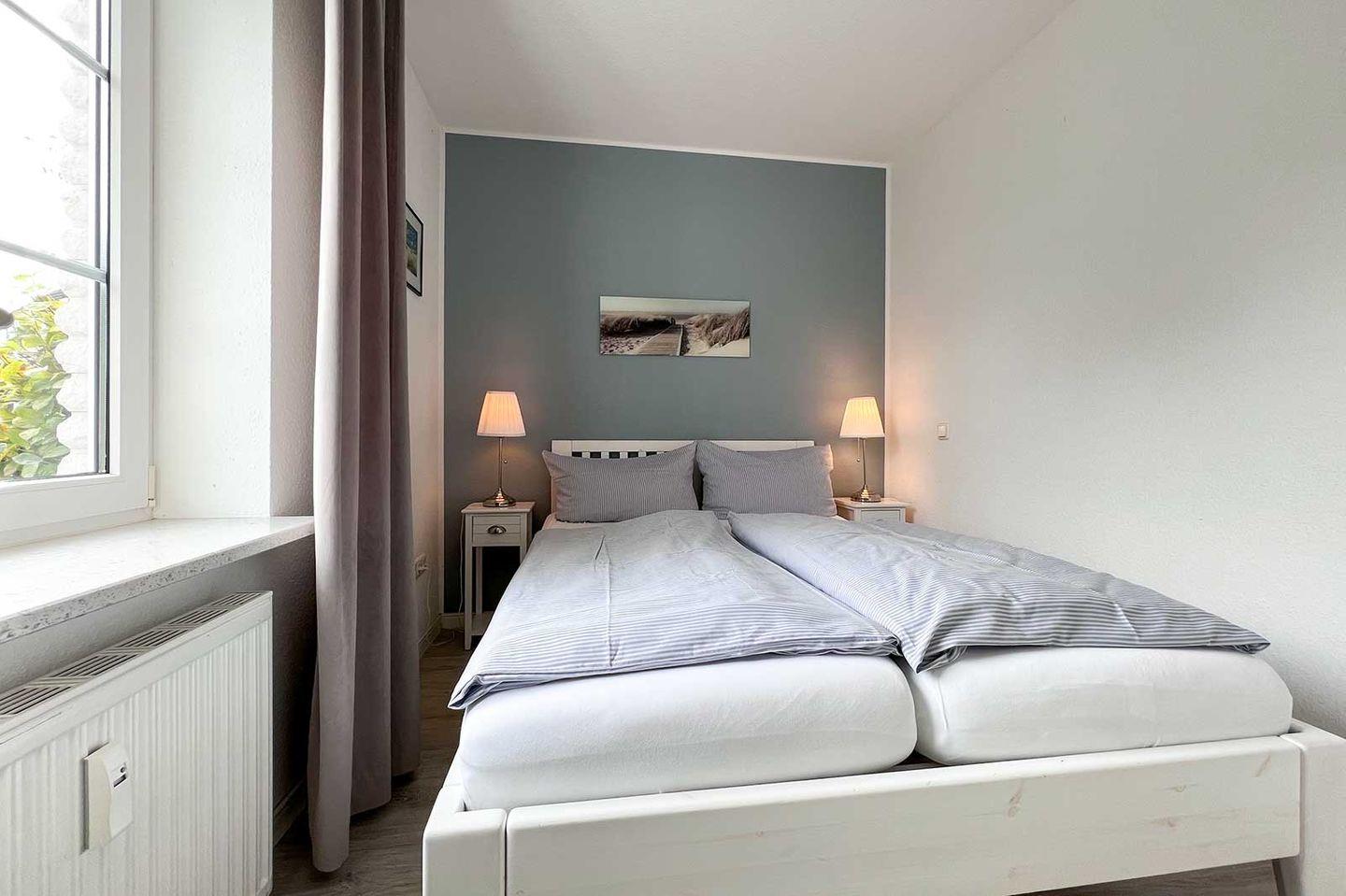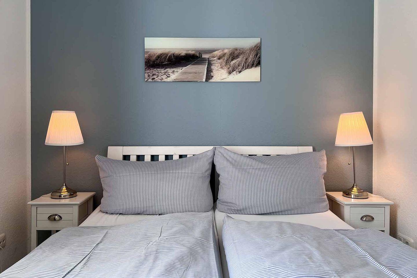In der Ferienwohnung stehen Ihnen ein Schlafzimmer mit einem gemütlichen Doppelbett (140x200 cm) und einem Badezimmer mit Dusche und Badewanne zur Verfügung. Insgesamt bietet die Wohnung Schlafmöglichkeiten für bis zu vier Personen, sodass auch zwei Personen im Wohnzimmer auf der Schlafcouch Platz finden können. Der wohnliche Charakter der Wohnung sorgt dafür, dass Sie sich sofort wie zu Hause fühlen.